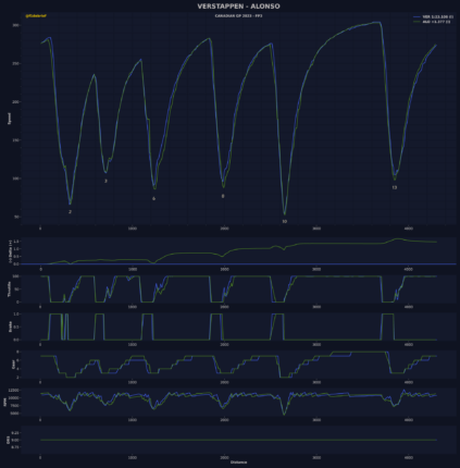 Στην 7η θέση βρέθηκε ο Καναδός Lance Stroll με τη δεύτερη Aston Martin, εμπρός από τον εντυπωσιακό Yuki Tsunoda, ο οποίος όμως είχε μερικά τετ-α-κέ και δέχθηκε κριτική, καθώς στα αρχικά στάδια της διαδικασίας, ο Alonso τον αποκάλεσε… τυφλό όταν τον βρήκε μπροστά του στη φουρκέτα. Ο Ιάπωνας ήταν τυχερός που δεν χτύπησε σε τοίχο όταν είχε ένα τετ-α-κέ 360 μοιρών στην ακολουθία στροφών 3/4. O Tsunoda είχε ένα τετ-α-κέ και στη 2η στροφή αργότερα.