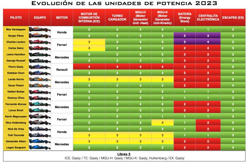 Έπειτα από το πρόβλημα που αντιμετώπισε εχθές στο FP1 ο Gasly, η Alpine τοποθέτησε στο μονοθέσιό του τον 4ο V6, MGU-H, MGH-K και turbo, από τα 4 που επιτρέπονται κατά τη διάρκεια της σεζόν χωρίς ποινή. Επίσης, η Haas τοποθέτησε την 3η MGU-K στο μονοθέσιο του Nico Hulkenberg, έπειτα από τη φωτιά που ανάγκασε τον Γερμανό να σταματήσει στο μέσο του FP2 εχθές.