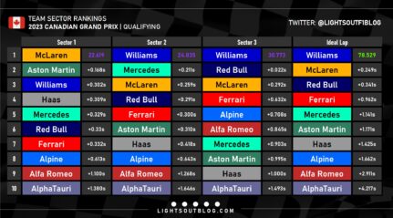 Την πρώτη δεκάδα συμπλήρωσε ο Alex Albon, ο οποίος επειδή βγήκε εκτός πίστας στο τελευταίο chicane, είδε το χρόνο του να ακυρώνεται και κατέληξε στη 10η θέση, ενώ είχε επικρατήσει στο Q2, με μία εμπνευσμένη επιλογή ελαστικών, που του επέτρεψε να σημειώσει τον ταχύτερο χρόνο ολόκληρης της διαδικασίας.