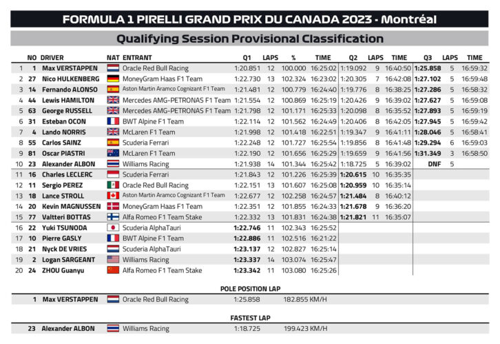 Άλλη μία συναρπαστική και απρόβλεπτη διαδικασία κατατακτήριων δοκιμών προσέφερε το GP Καναδά, για τρίτο συνεχόμενο αγώνα. Η βροχή ήταν ο πρωταγωνιστής, δημιουργώντας δύσκολες συνθήκες που απαιτούσαν κρίσιμες αποφάσεις επιλογής ελαστικών.