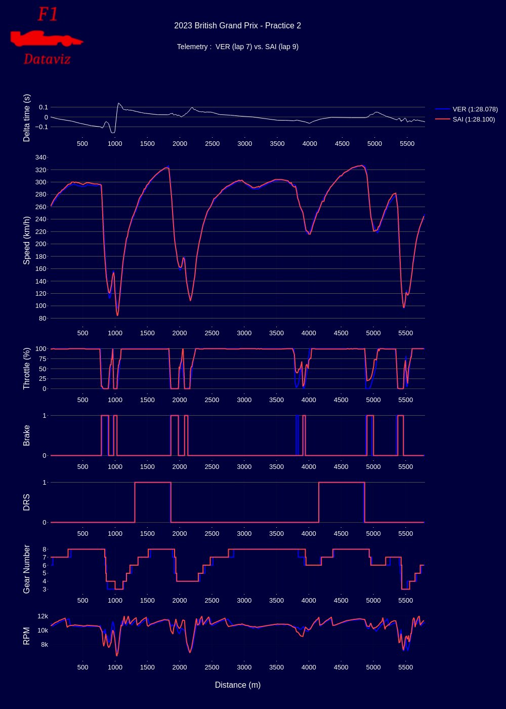 Ο Max Verstappen ήταν ο ταχύτερος οδηγός και της δεύτερης περιόδου ελεύθερων δοκιμών Παρασκευής του GP Μ. Βρετανίας, ωστόσο αυτή τη φορά η διαφορά του από τον 2ο, Carlos Sainz ήταν μόλις 22 χλστ. του δλ.