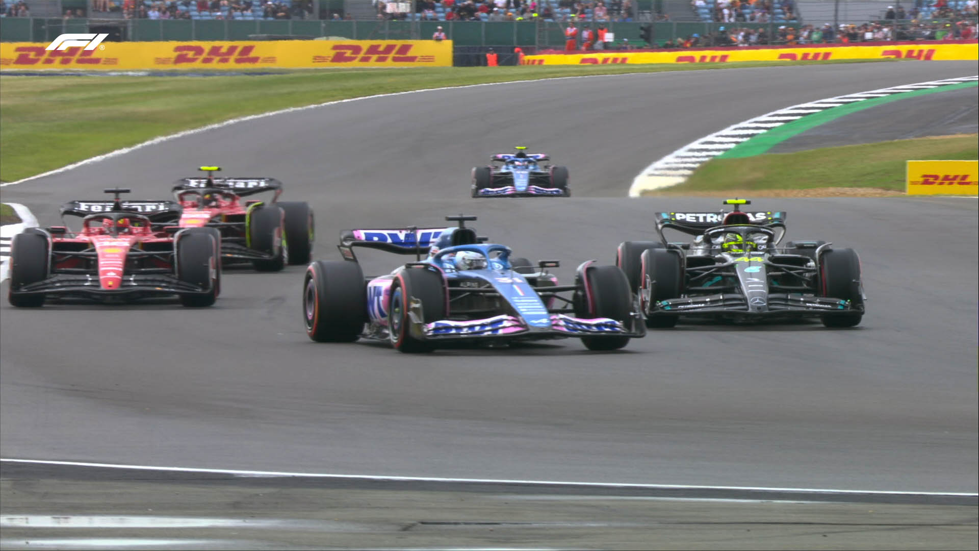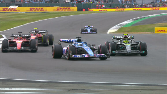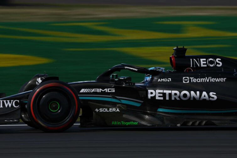 Τις Ferrari ακολούθησαν οι δύο Mercedes. Ο Sainz βρέθηκε μόλις 7 χλστ. του δλ. εμπρός από τον George Russell, που κέρδισε για πρώτη φορά στους τελευταίους πέντε αγώνες τον Lewis Hamilton για 56 χλστ. του δλ. Η Mercedes έχανε ταχύτητα στις ευθείες στην πίστα του Silverstone, αλλά ανέκαμψε από την πολύ δύσκολη Παρασκευή που είχε.