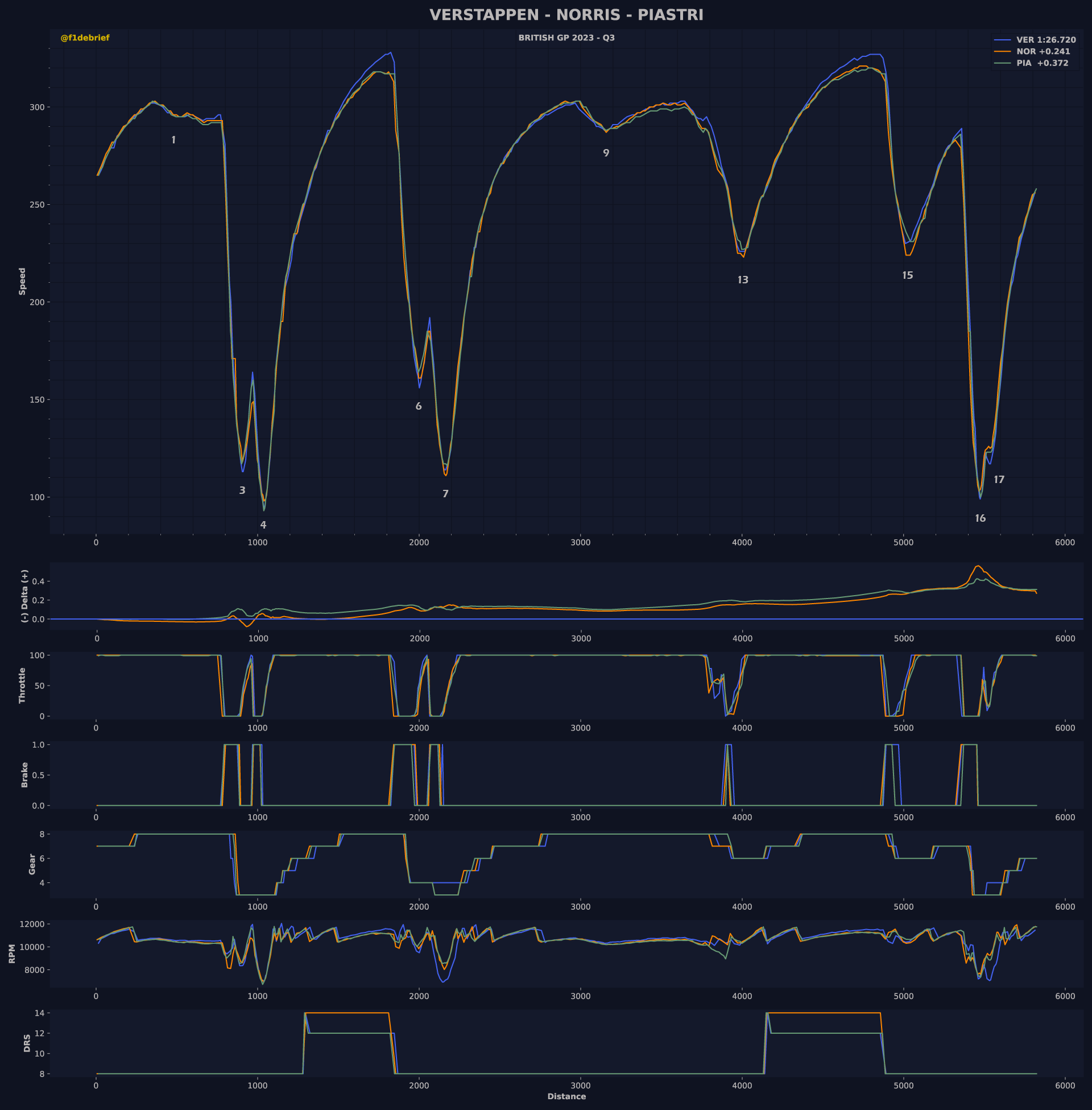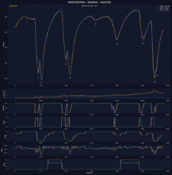 Επίσης, η McLaren καταφέρνει να φέρει στις ιδανικές θερμοκρασίες τα εμπρός ελαστικά της πολύ εύκολα και αυτό ίσως τη βοήθησε στις χαμηλές θερμοκρασίες ασφάλτου (27 βαθμοί Κελσίου). Ο Lando Norris χρησιμοποιούσε επίσης την καινούργια εμπρός αεροτομή της McLaren, η οποία πανηγύρισε το σημερινό αποτέλεσμα δεόντως, καθώς είδε τον Oscar Piastri στην 3η θέση, την καλύτερη που έχει πετύχει στην καριέρα του. Ο Αυστραλός διαθέτει τις αναβαθμίσεις που παρουσίασε η McLaren στο GP Αυστρίας, αλλά όχι την καινούργια εμπρός αεροτομή.