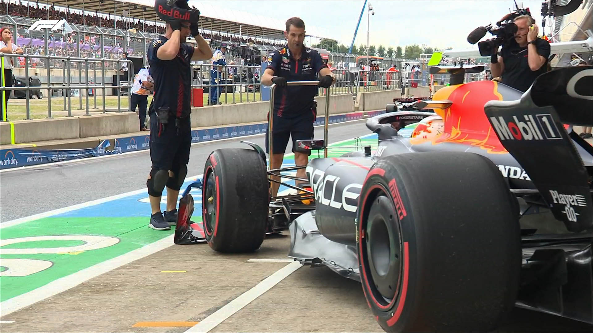 Καθώς ο Verstappen πήγε να εξέλθει από το γκαράζ της Red Bull, γλίστρησε στο βρεγμένο και κατέστρεψε την εμπρός αεροτομή της Red Bull χτυπώντας στον τοίχο του pit wall. Η ομάδα αντικατέστησε άμεσα το ρύγχος και ο Ολλανδός συνέχισε. Η πίστα είχε στεγνώσει και ήταν ταχύτερη, οπότε όλοι οι οδηγοί βελτίωσαν το χρόνο τους. Ο Verstappen προσπέρασε τον Hamilton στο γύρο προετοιμασίας, σε στιγμιότυπο που έμοιαζε με αγώνα.