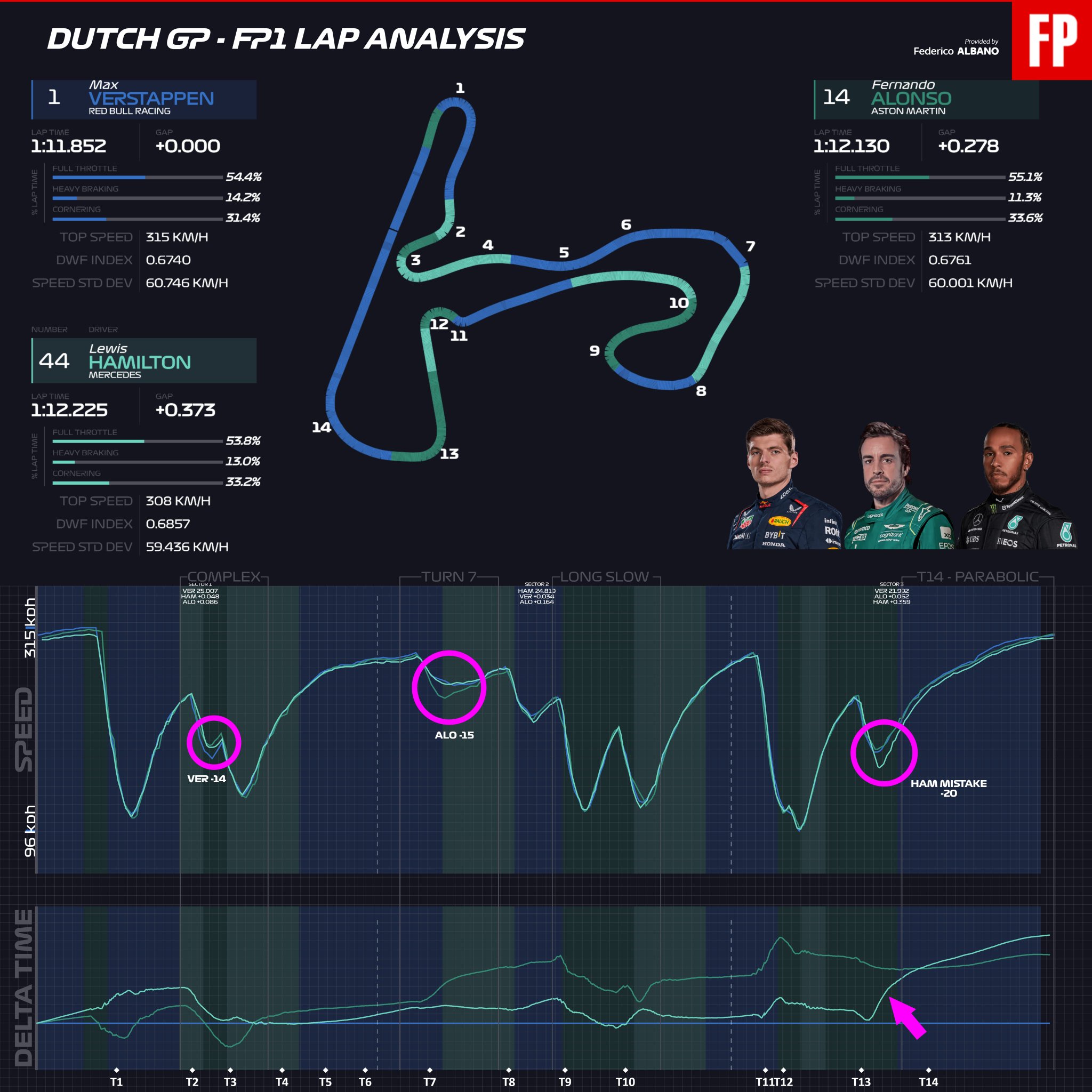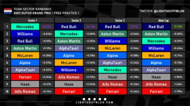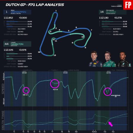 H πρώτη περίοδος ελεύθερων δοκιμών της Formula 1 έπειτα από το καλοκαιρινό διάλειμμα, στα πλαίσια του GP Ολλανδίας στη σκονισμένη από την άμμο της παραλίας που βρίσκεται δίπλα στην πίστα του Zandvoort, η οποία διαθέτει αρκετές στροφές με έντονη κλίση, που ασκούν υψηλά φορτία στα σκληρά ελαστικά (γόμες: C1, C2 και C3).