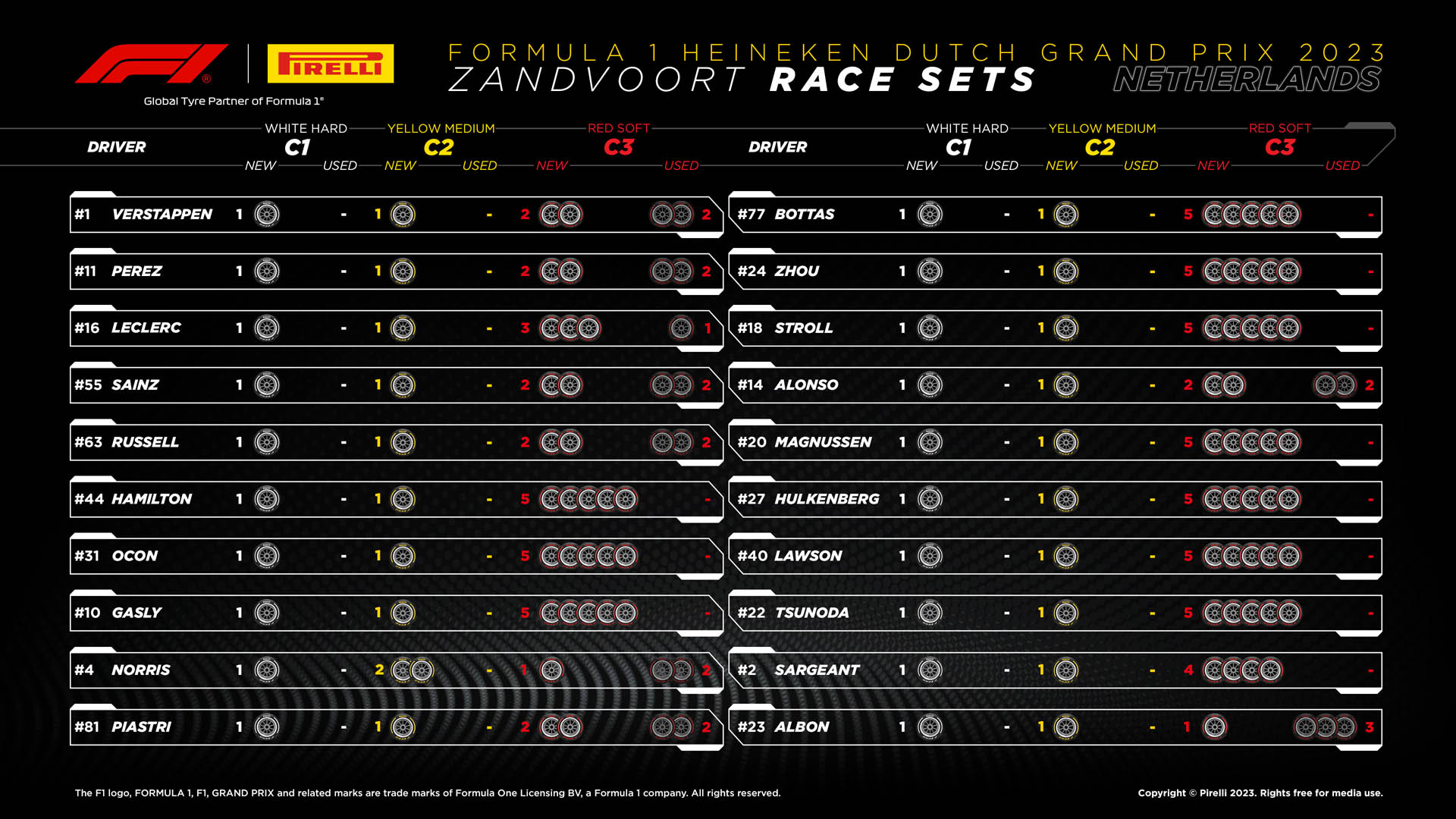 O Fernando Alonso με την Aston Martin, θα θέλει να εισέλθει στη μάχη για το βάθρο, αλλά αν δεν καταφέρει να περάσει από νωρίς μπροστά από τη Williams, ίσως δυσκολευθεί να το κάνει. Στην πίστα του Zandvoort τα προσπεράσματα δεν είναι εύκολα, και έχουμε δει πολλές φορές φέτος τη Williams να έχει τη δυνατότητα να διατηρήσει πίσω της ταχύτερα μονοθέσια χάρη στην υψηλότερη τελική ταχύτητα που αναπτύσσει στις ευθείες. Αυτός θα είναι ο στόχος του Albon και για σήμερα.