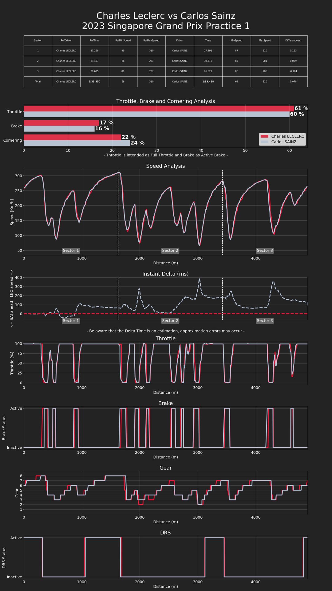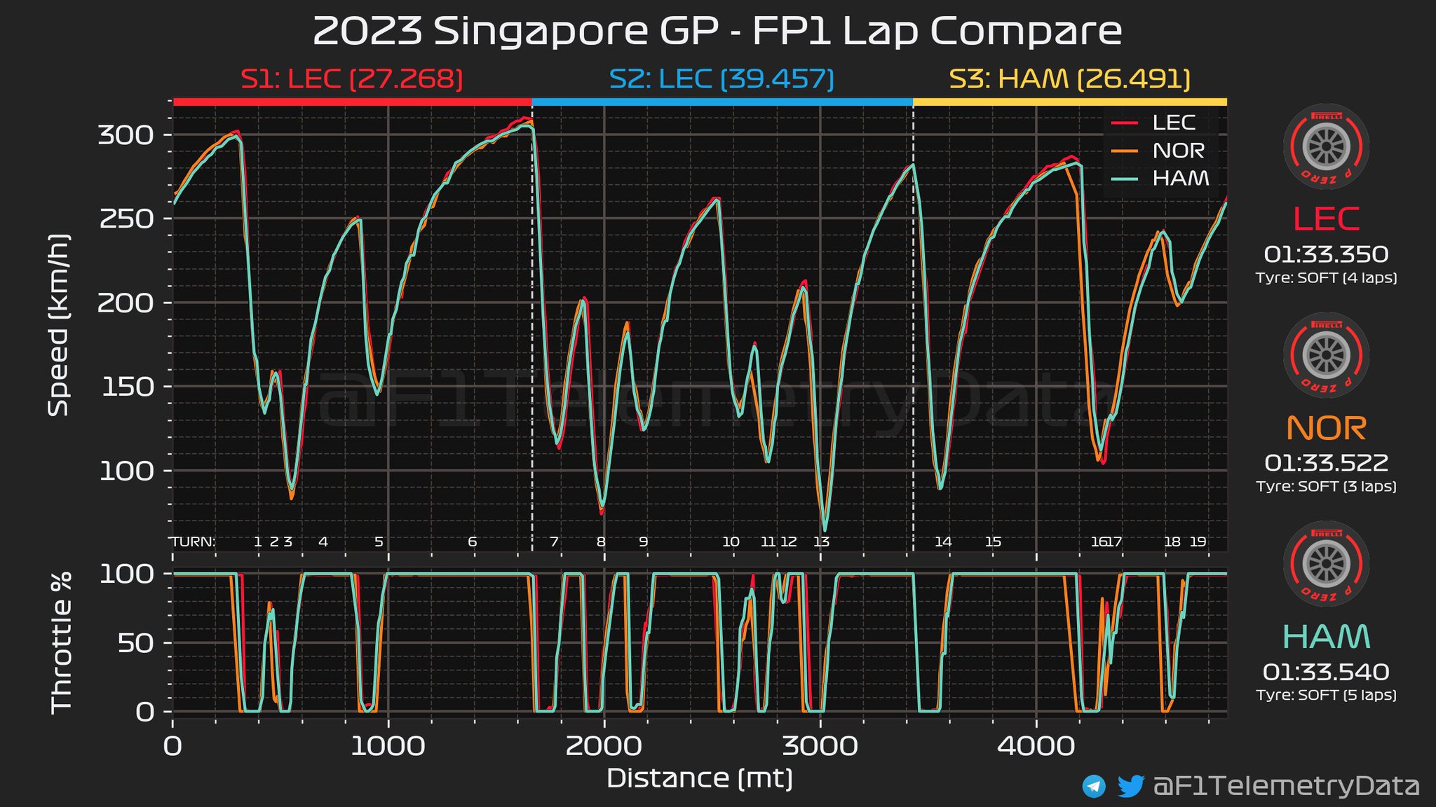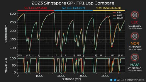To FP1 του GP Σιγκαπούρης δεν διεξάγεται σε αντιπροσωπευτικές συνθήκες, καθώς πραγματοποιείται υπό το φως του ηλίου, αντί για νύχτα, με πιο υψηλές θερμοκρασίες στον ασφαλτοτάπητα. Ωστόσο, είναι σίγουρα χρήσιμη για πρωτοεμφανιζόμενους οδηγούς όπως ο Oscar Piastri (McLaren) και o Liam Lawson (AlphaTauri), καθώς και για την αξιολόγηση των πολυάριθμων αναβαθμίσεων που έχουν παρουσιαστεί σε αυτό τον αγώνα. McLaren και AlphaTauri ηγούνται στον αγώνα αναβαθμίσεων στο μονοθέσιο του Lando Norris, με την Alpine να παρουσιάζει επίσης πολλά καινούργια πράγματα.