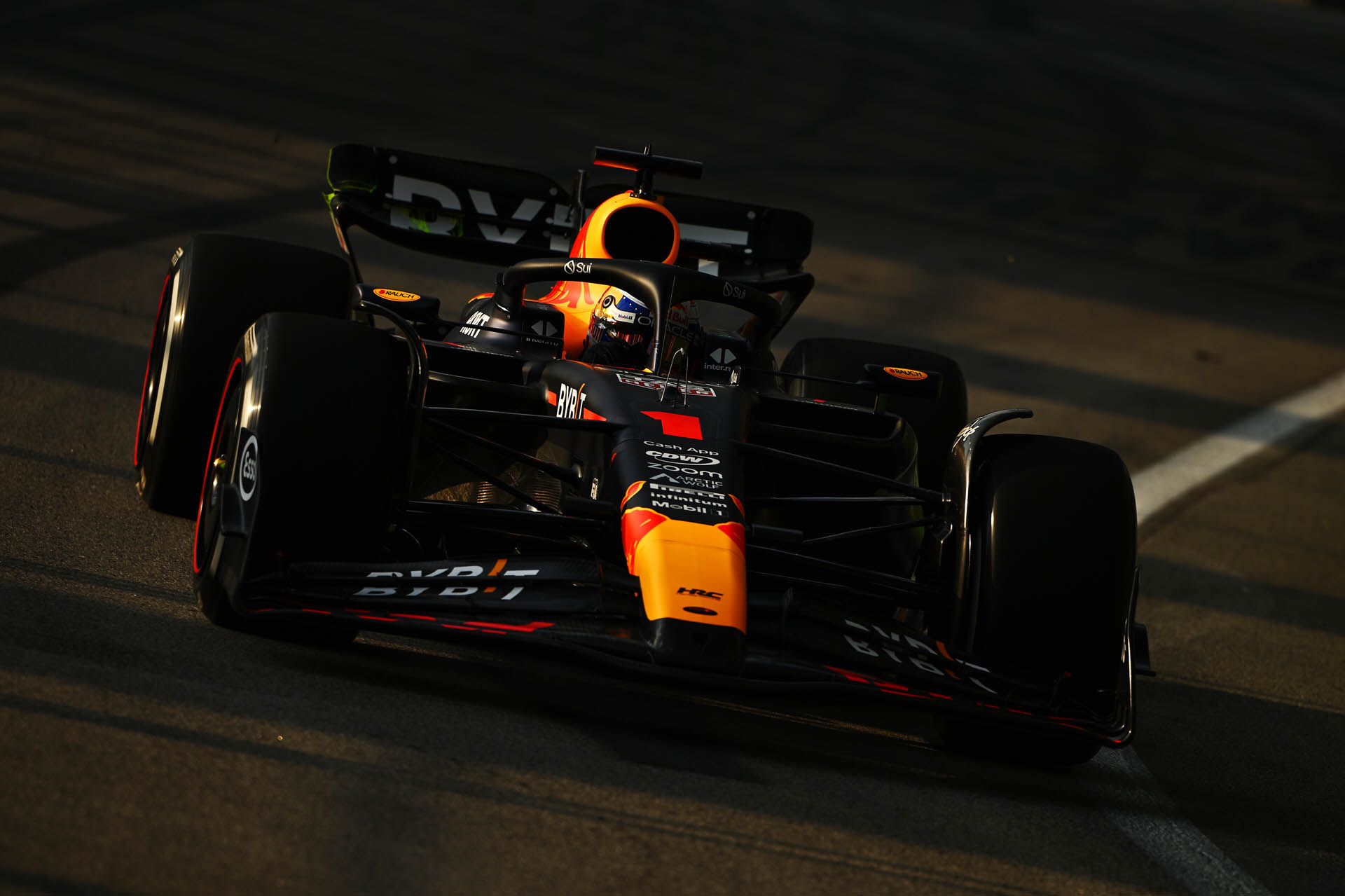 Στην 3η θέση πλασαρίστηκε ο Max Verstappen με τη Red Bull, μόλις 0,126 δλ. πίσω από τον Leclerc. O Ολλανδός δήλωσε εχθές ότι η Marina Bay αποτελεί μία από τις πιο δύσκολες προσκλήσεις για την RB19, της οποίας το πλεονέκτημα έχουμε δει να μικραίνει σε αργές πίστες. Ο Vestappen είχε και πάλι παράπονα για επιθετικά κατεβάσματα στο κιβώτιο, ενώ ανέφερε υπερβολική υπερστροφή στο μέσο έως την έξοδο των στροφών. Αργότερα, ανέφερε ότι στην ίδια φάση των στροφών δεν είχε καθόλου πρόσφυση στον πίσω άξονα. Ο Sergio Perez (7ος) ανέφερε ότι δυσκολευόταν να δει την κορυφή των στροφών και ανέφερε ότι ίσως θα πρέπει να ανυψώσει τη θέση οδήγησης για το υπόλοιπο τριήμερο.