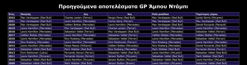 F1-GP Άμπου Ντάμπι: Ωράρια και Προεπισκόπηση