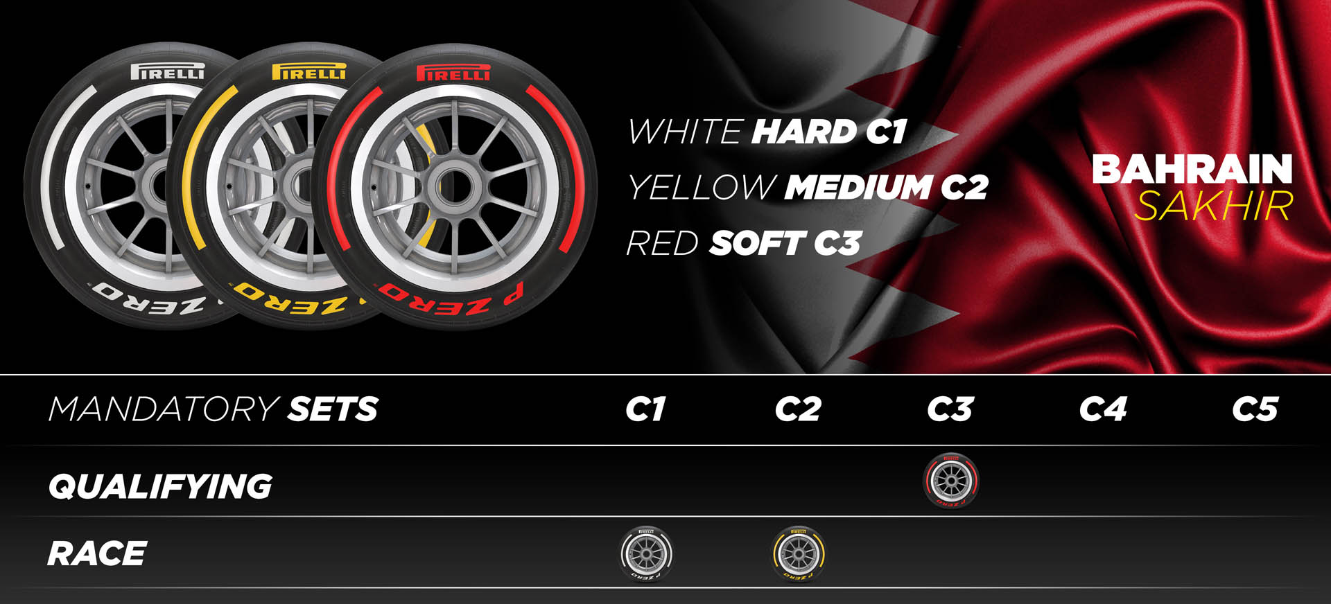Στους δύο αγώνες της Μέσης Ανατολής, θα χρησιμοποιηθούν τα ίδια ελαστικά με πέρυσι. Στο GP Μπαχρέιν, που θα πραγματοποιηθεί, από τις 29 Φεβρουαρίου έως τις 2 Μαρτίου, και είναι ένας από τους πιο δύσκολους αγώνες για τα ελαστικά, θα χρησιμοποιηθούν οι πιο σκληρές γόμες: C1, C2 και C3. Μια εβδομάδα αργότερα, στο GP Σαουδικής Αραβίας, τα ελαστικά θα είναι ένα βήμα πιο μαλακά: Η C2 θα λειτουργεί ως σκληρή, η C3 ως μέση και η C4 ως μαλακή.