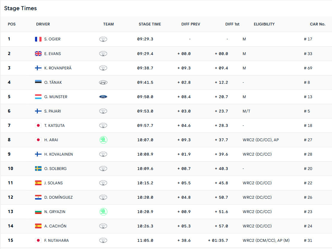 Το πρώτο μισό αυτής της ειδικής διαδρομής ώθησε τον Ogier να πιέσει περισσότερο, καθώς παραδέχτηκε ότι δεν είχε βρει τον σωστό ρυθμό για να ξεκινήσει την ειδική διαδρομή της Nukata. Ο Γάλλος 8άκις Παγκόσμιος Πρωταθλητής ήταν ταχύτερος του Evans σε όλες τις υπόλοιπες ειδικές διαδρομές, κατακτώντας τη νίκη με διαφορά 11,6 δευτερολέπτων.