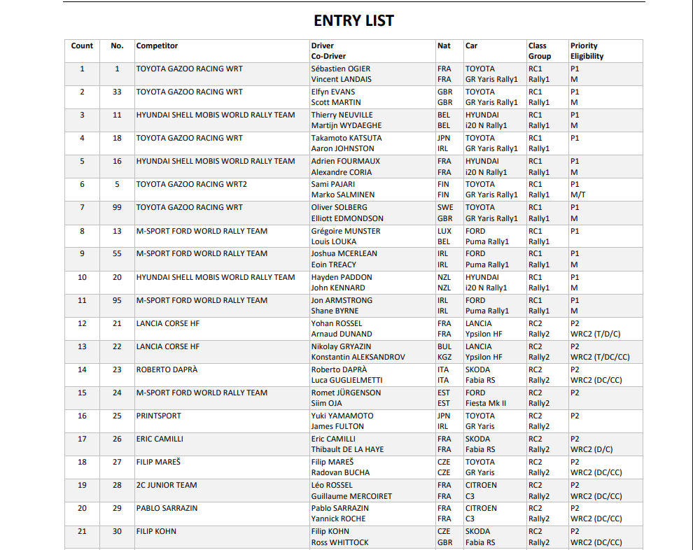 Δείτε παρακάτω τις συμμετοχές του Ράλλυ Μόντε Κάρλο 2026: