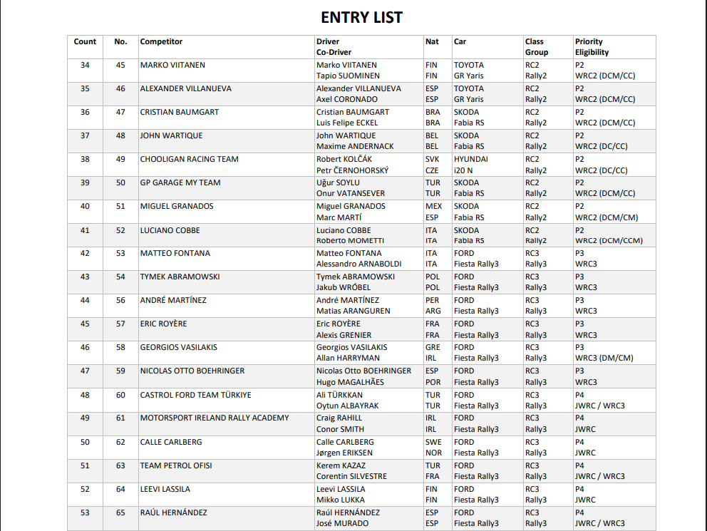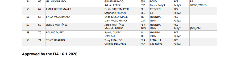 Δείτε αναλυτικά τις συμμετοχές του Ράλλυ Σουηδίας 2026: