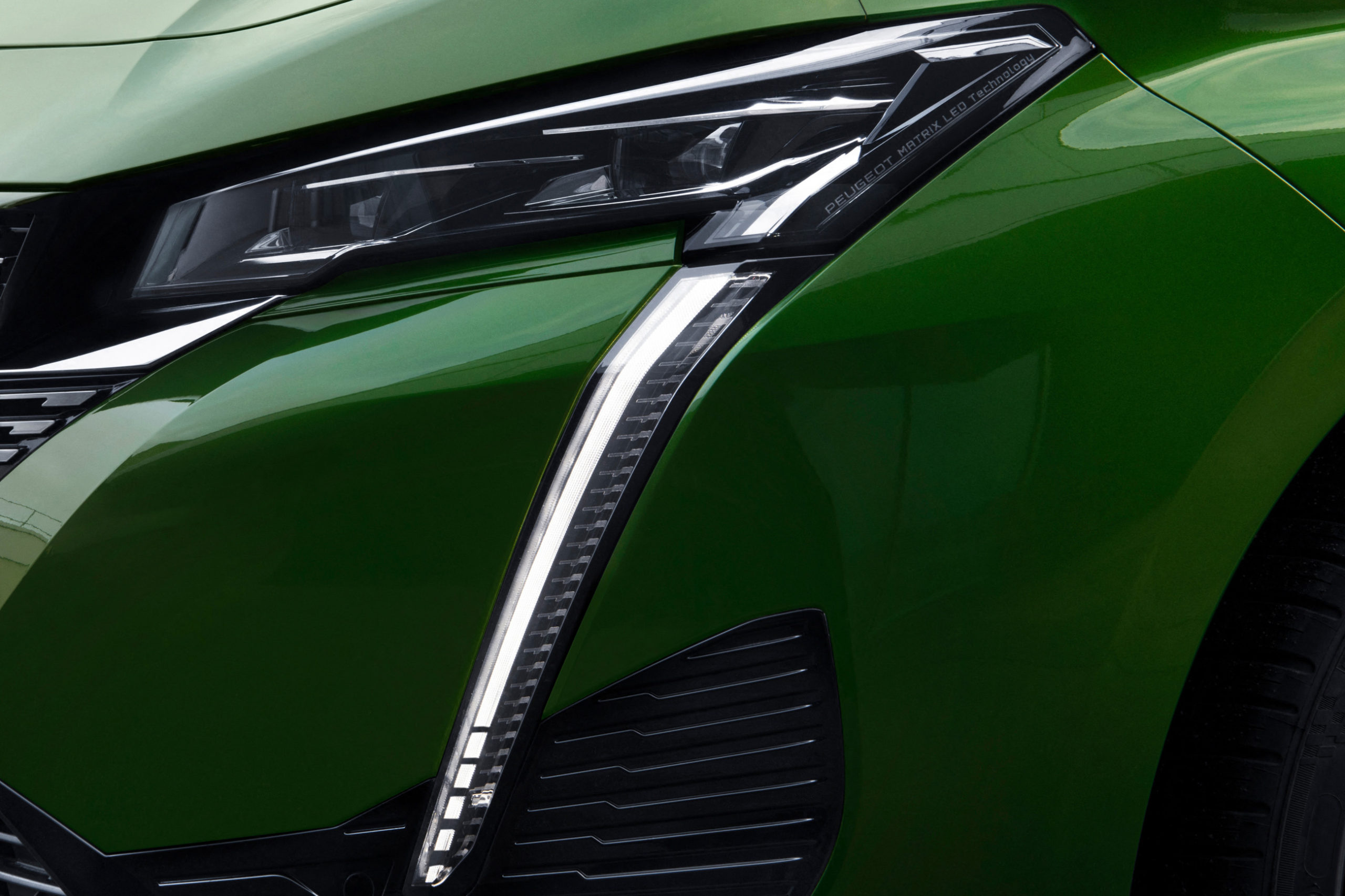 Στο κέντρο της κάθετης γρίλιας βρίσκεται το νέο σήμα της Peugeot με τη νέα μορφή του λιονταριού, ενώ από πάνω – για πρώτη φορά – εμφανίζεται το όνομα του μοντέλου, το 308. Τα φωτιστικά σώματα (LED από την πρώτη έκδοση εξοπλισμού και full LED στις εκδόσεις GT/GT Pack) ακολουθούν τη λογική των 208, 2008, 3008, 508, ενώ από το πάνω μέρος τους αρχίζει μία γραμμή που διατρέχει το αμάξωμα στο πλάι και ενώνεται με το πίσω μέρος. Γνώριμη εικόνα συναντάμε και στο πίσω μέρος, όπου τα μακρόστενα full LED φώτα χωρίζονται σε τρία τμήματα και ενώνονται μεταξύ τους με μία μαύρη λωρίδα.