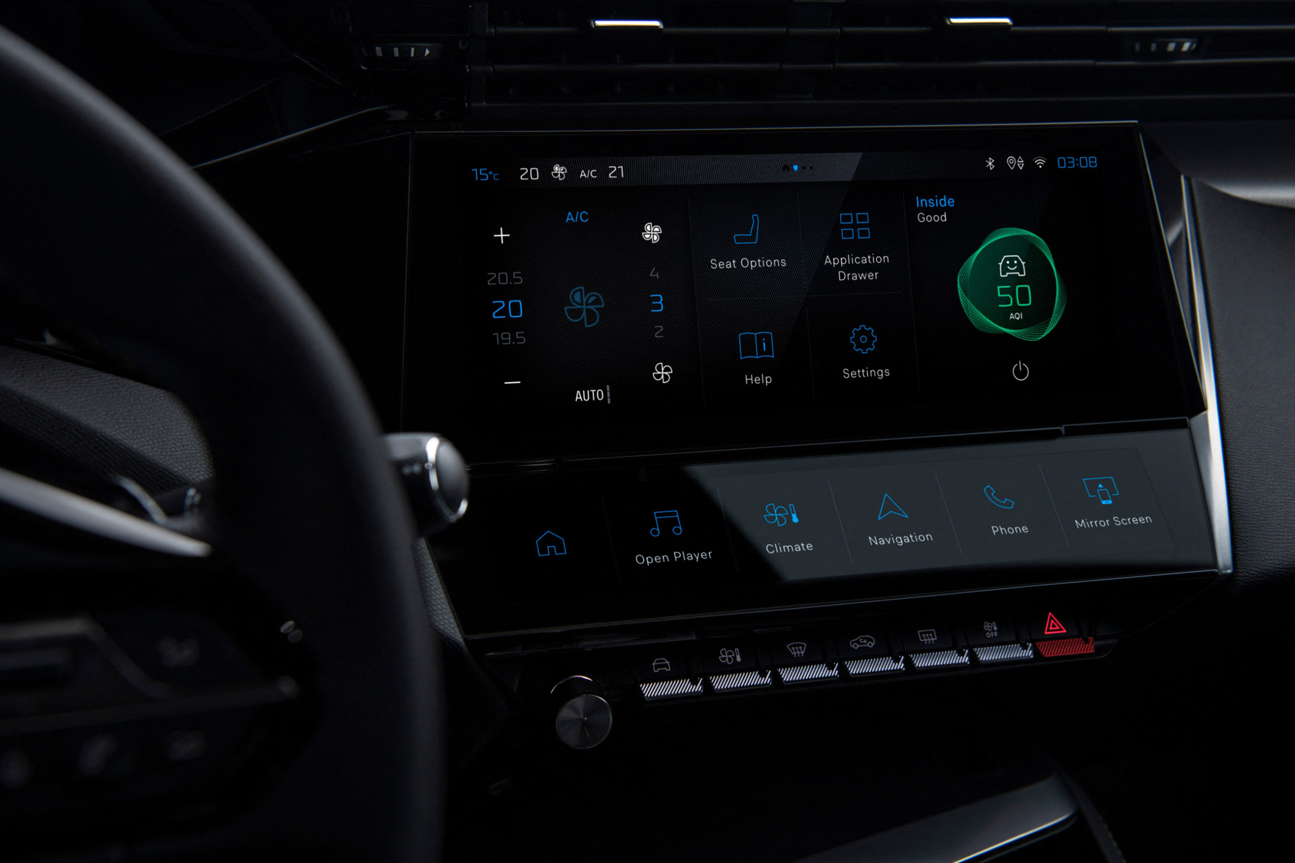 Κεντρική θέση στο νέο σύστημα πολυμέσων i-Connect καταλαμβάνει η οθόνη αφής 10 ιντσών, η οποία λειτουργεί στη «λογική» ενός τάμπλετ και έχει κεντρική σελίδα που διαμορφώνεται με βάση τις προτιμήσεις του οδηγού. Ακριβώς από κάτω βρίσκονται διακόπτες αφής για τη ρύθμιση π.χ. του κλιματισμού ή του ηχοσυστήματος, ενώ μία σειρά από λειτουργίες ελέγχονται μέσω του τιμονιού.