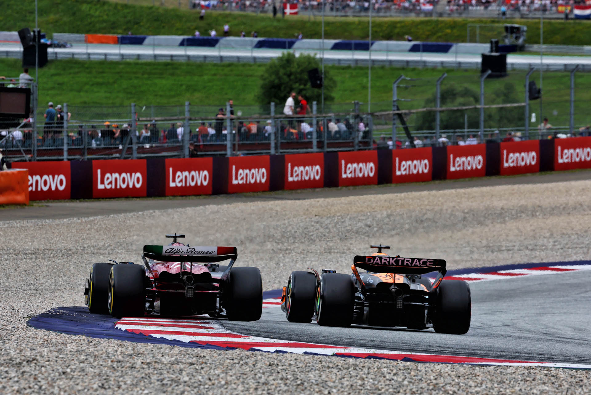 Το πρόβλημα αυτό είναι γνωστό τα τελευταία χρόνια στο Red Bull Ring. Ωστόσο, η πίστα έχει διατηρήσει τον ασφαλτοστρωμένο χώρο διαφυγής στην εξωτερική των δύο τελευταίων στροφών, διότι αυτή είναι η διαμόρφωση που ζητά για τα δικά της στάνταρ ασφαλείας το MotoGP, που επίσης διοργανώνει αγώνα εκεί.