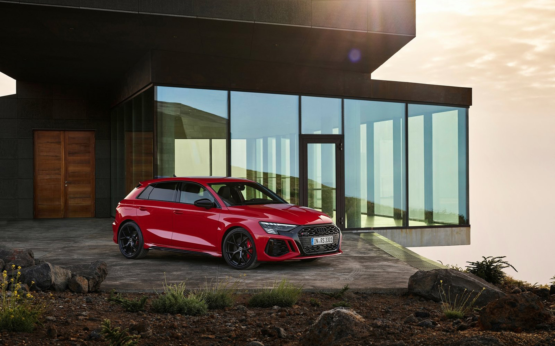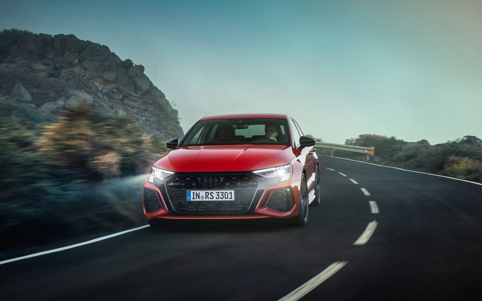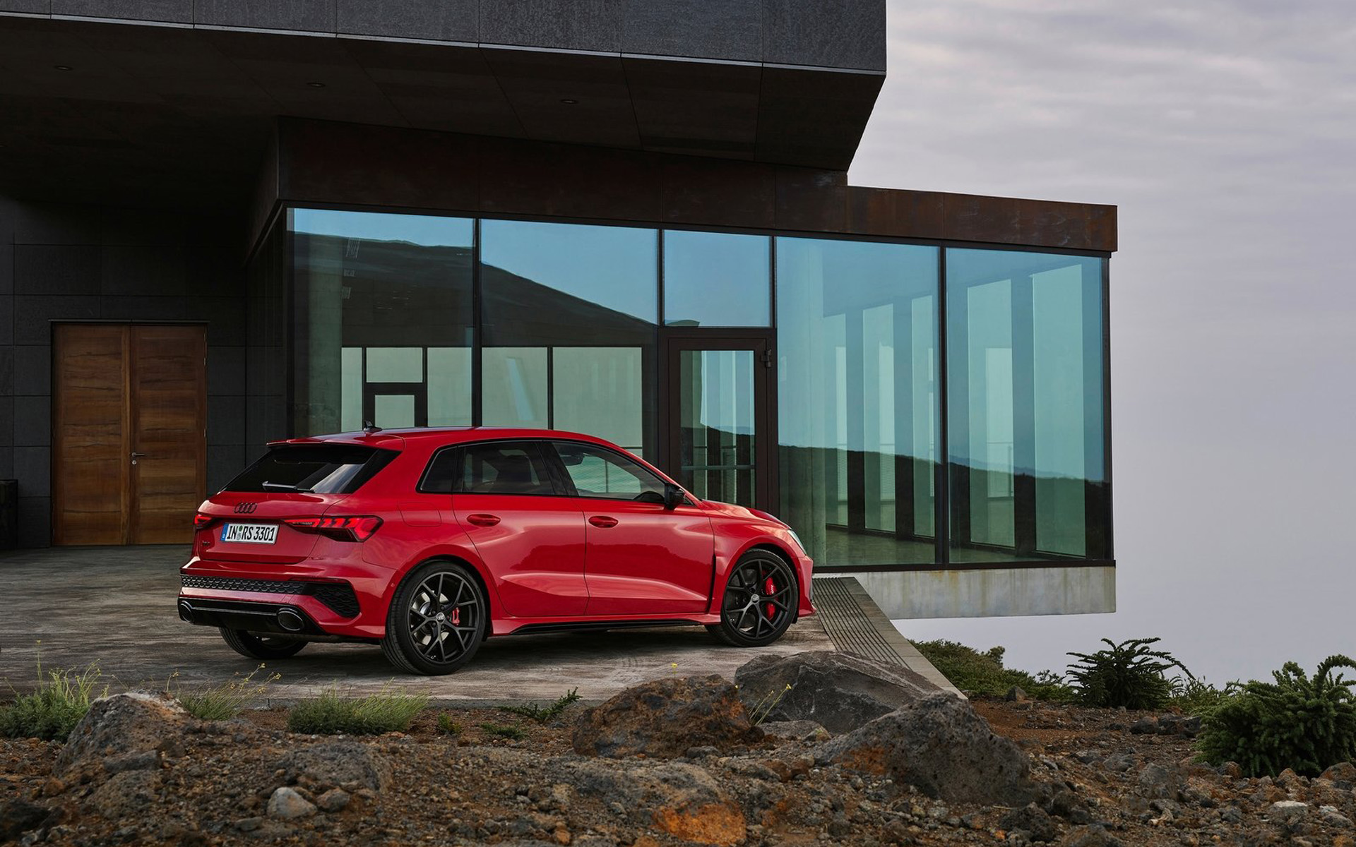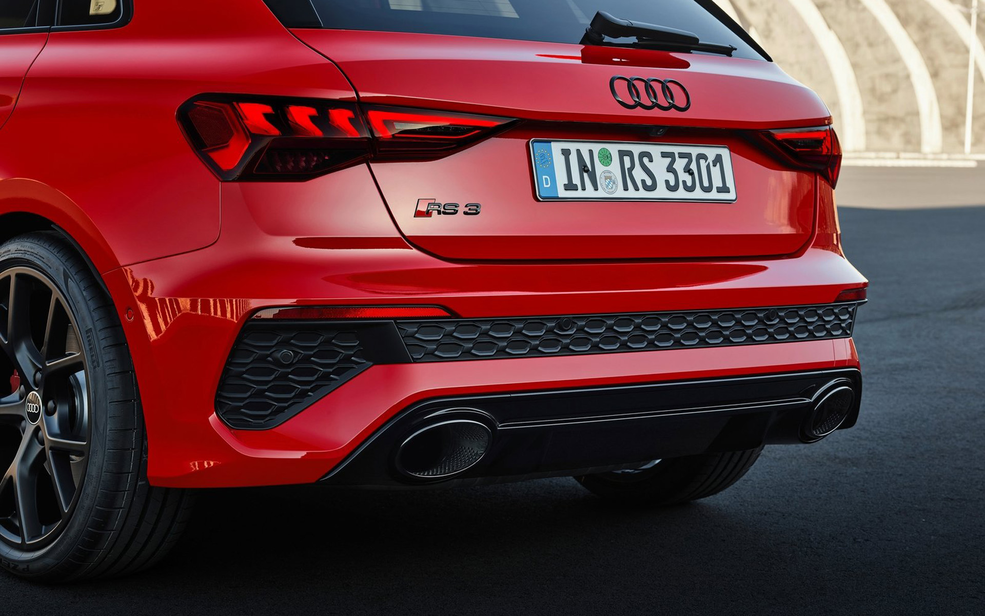 Η νέα γενιά του Audi RS3 Sportback ξεχωρίζει με την πρώτη ματιά, για την άγρια, επιθετική του εμφάνιση. Τεράστια εισαγωγή αέρα εμπρός, με λεπτά φωτιστικά σώματα, αλλά φαρδύτερο αμάξωμα που πατά σε τροχούς ειδικής σχεδίασης με ελαστικά (προαιρετικά) semi-slick Trofeo R της Pirelli.