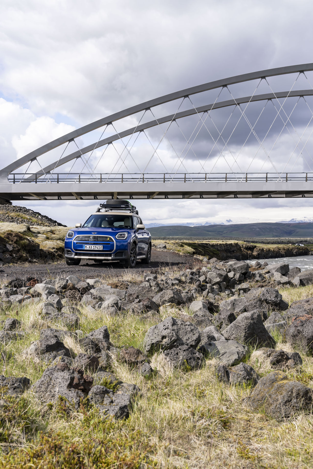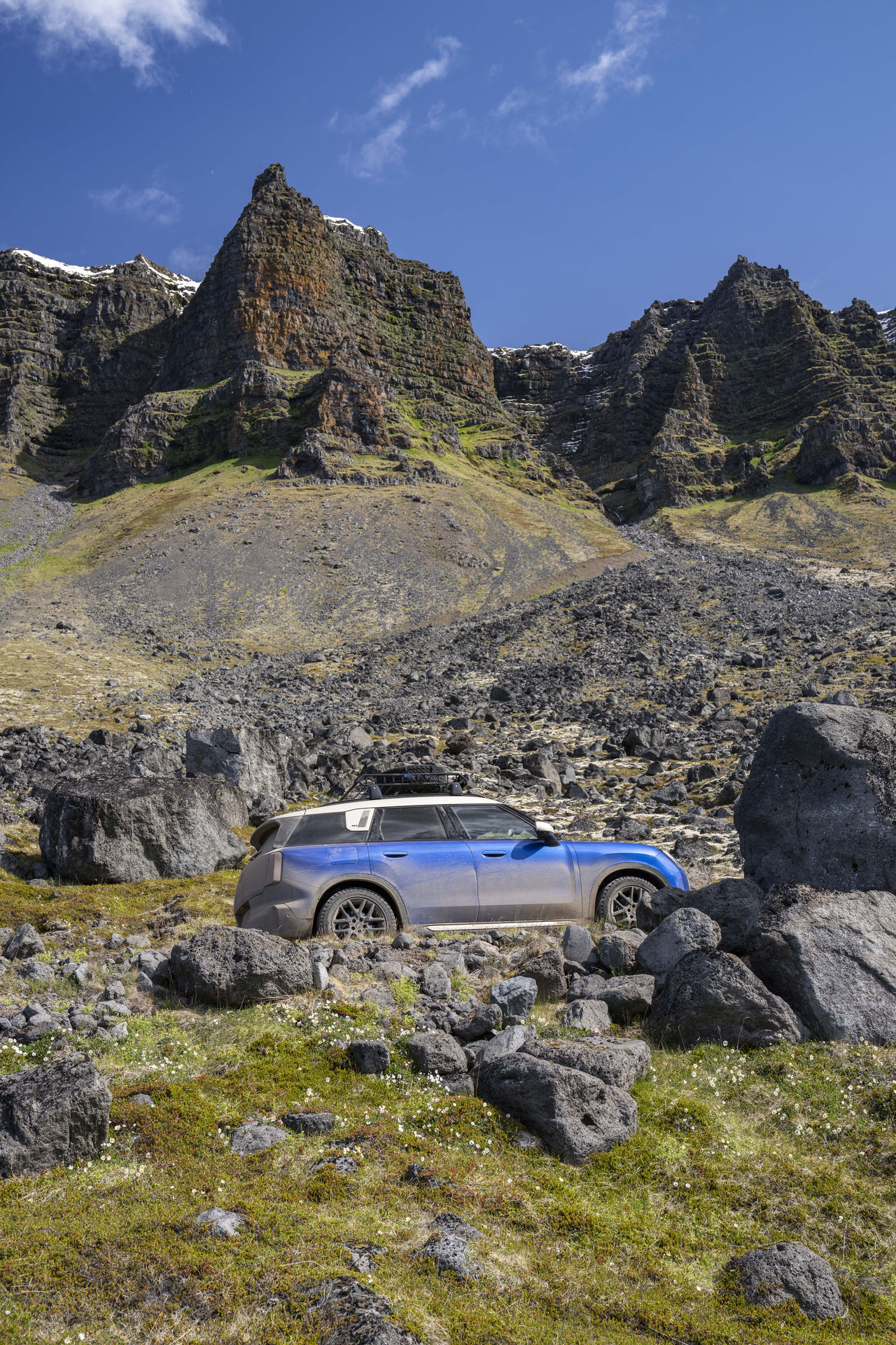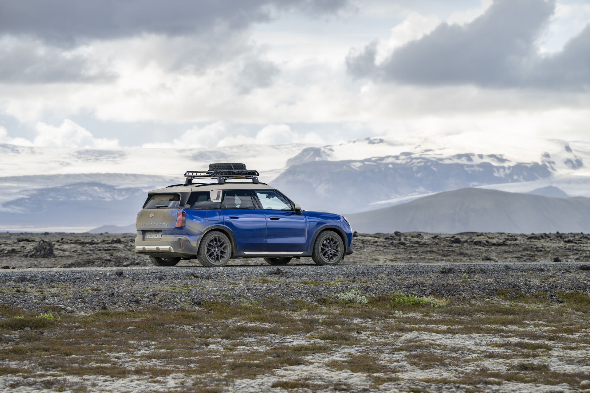 Το MINI Countryman SE ALL4 είναι κατάλληλα εξοπλισμένο, ώστε να είναι ακόμη πιο ανθεκτικό από ό,τι συνήθως, με εκτός δρόμου ελαστικά, σχάρα αποσκευών με εφεδρικό τροχό στην οροφή, ποδιές για την άμμο, φτυάρι και γρύλο, όλα μέρος του πρακτικού πακέτου εξοπλισμού, αν θέλει κανείς να απολαύσει αξιοθέατα όπως καταρράκτες, θερμοπίδακες και φιόρδ.