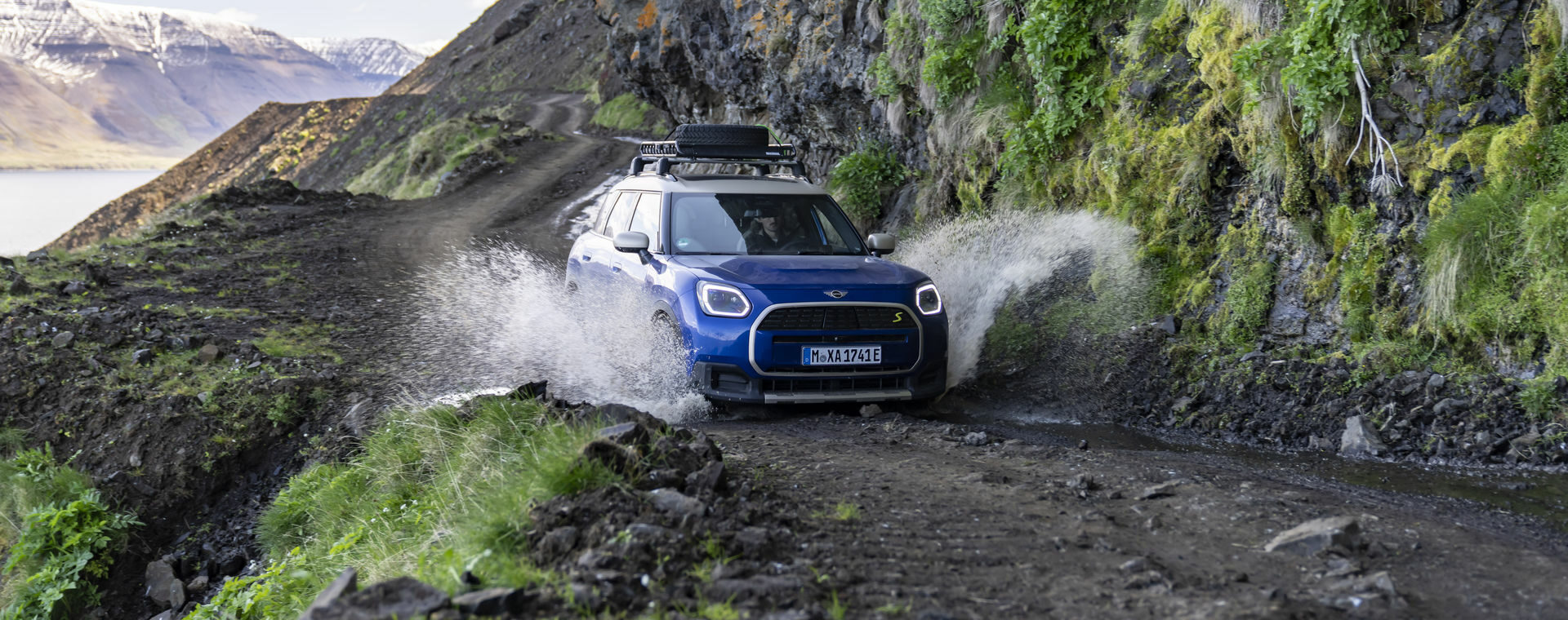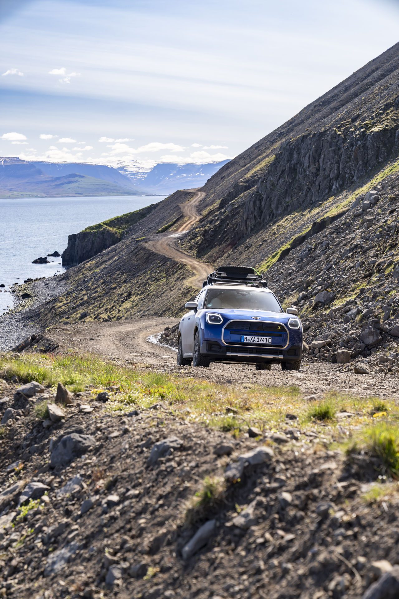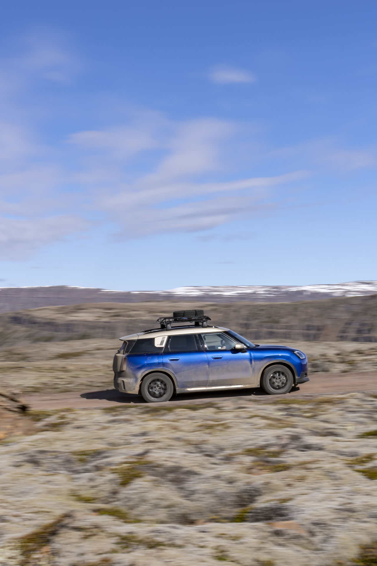 Το MINI Countryman SE ALL4 είναι κατάλληλα εξοπλισμένο, ώστε να είναι ακόμη πιο ανθεκτικό από ό,τι συνήθως, με εκτός δρόμου ελαστικά, σχάρα αποσκευών με εφεδρικό τροχό στην οροφή, ποδιές για την άμμο, φτυάρι και γρύλο, όλα μέρος του πρακτικού πακέτου εξοπλισμού, αν θέλει κανείς να απολαύσει αξιοθέατα όπως καταρράκτες, θερμοπίδακες και φιόρδ.
