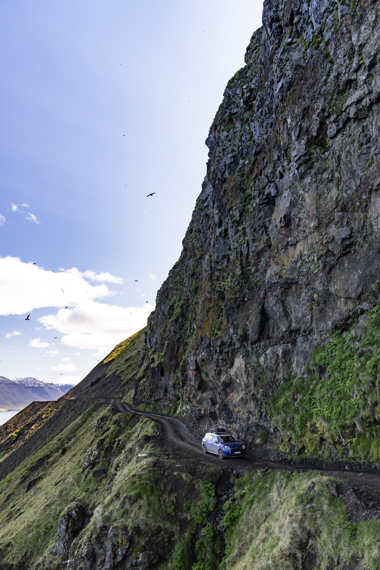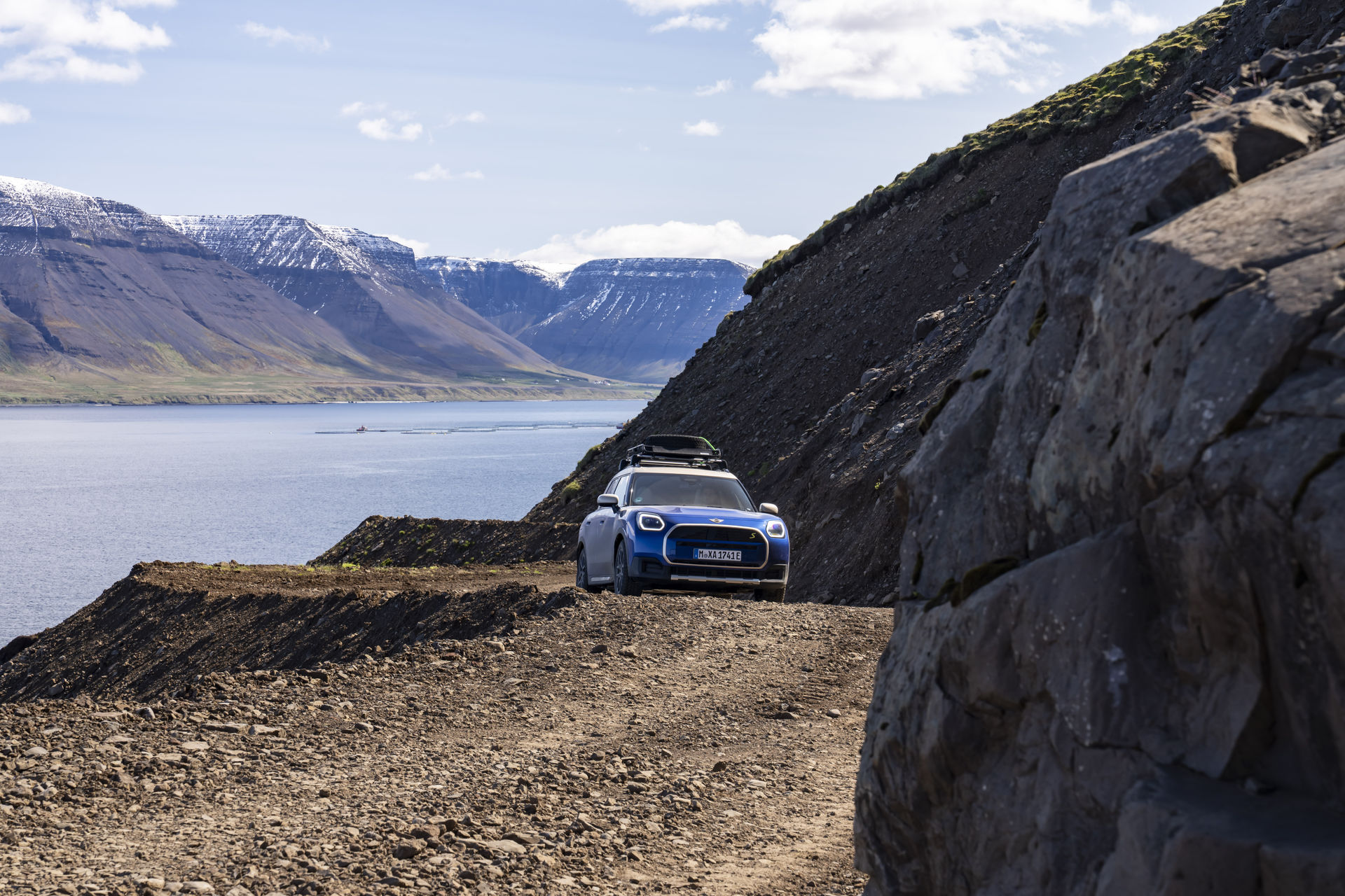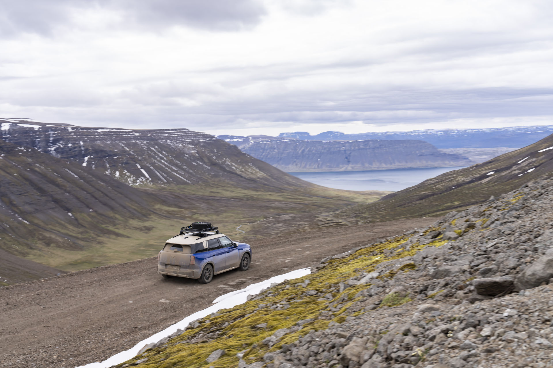 Νωρίς το επόμενο πρωί, το MINI Countryman SE ALL4, που έχει ήδη λερωθεί πολύ, ξεκινά το απαιτητικό τελικό στάδιο της Route 622 – μία από τις πιο δύσκολες και επικίνδυνες διαδρομές στα Westfjords, με ένα ιδιαίτερα εντυπωσιακό πέρασμα από χαλίκια δίπλα στο νερό, το οποίο μπορεί κανείς να διανύσει μόνο κατά την άμπωτη.