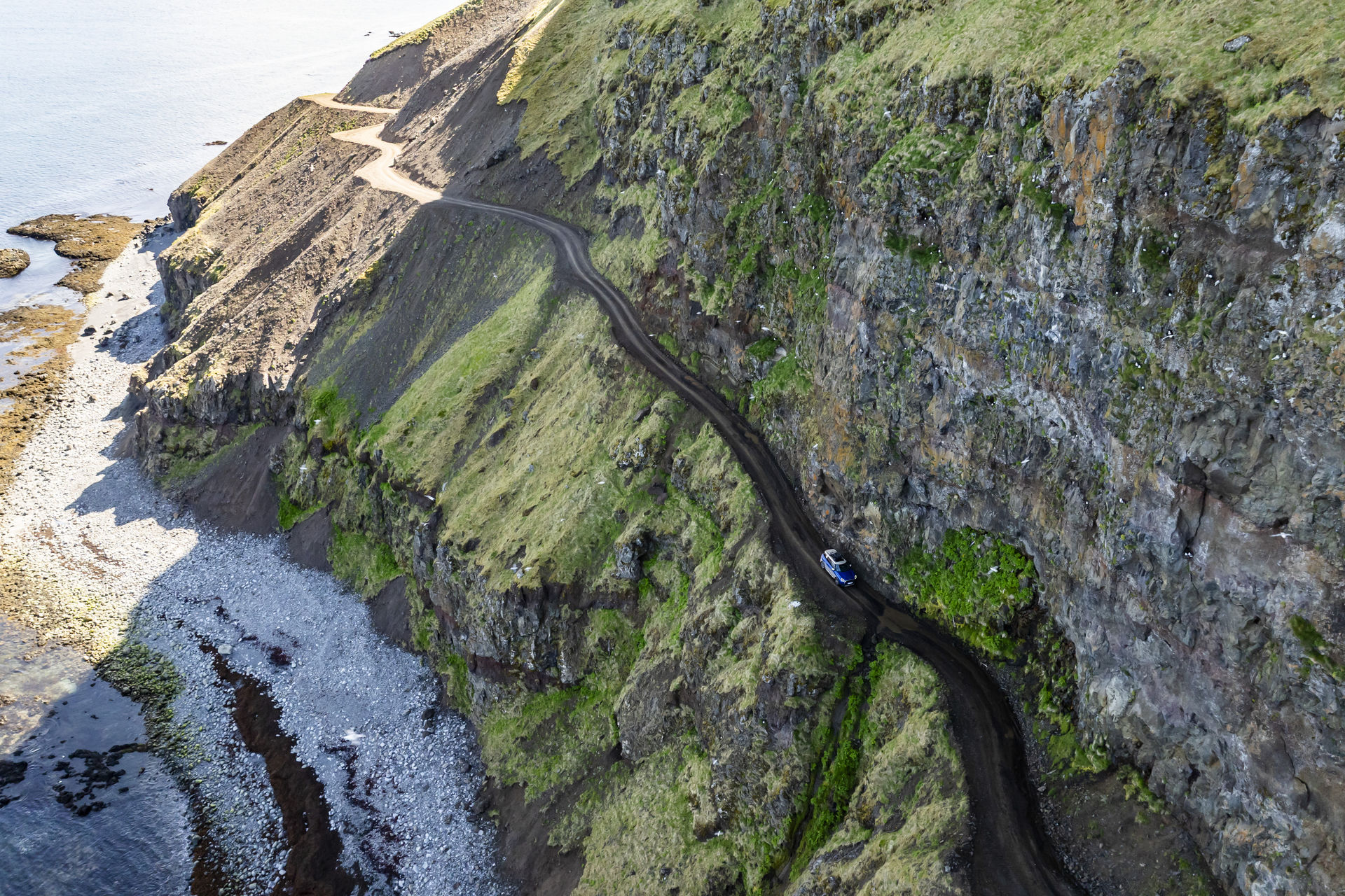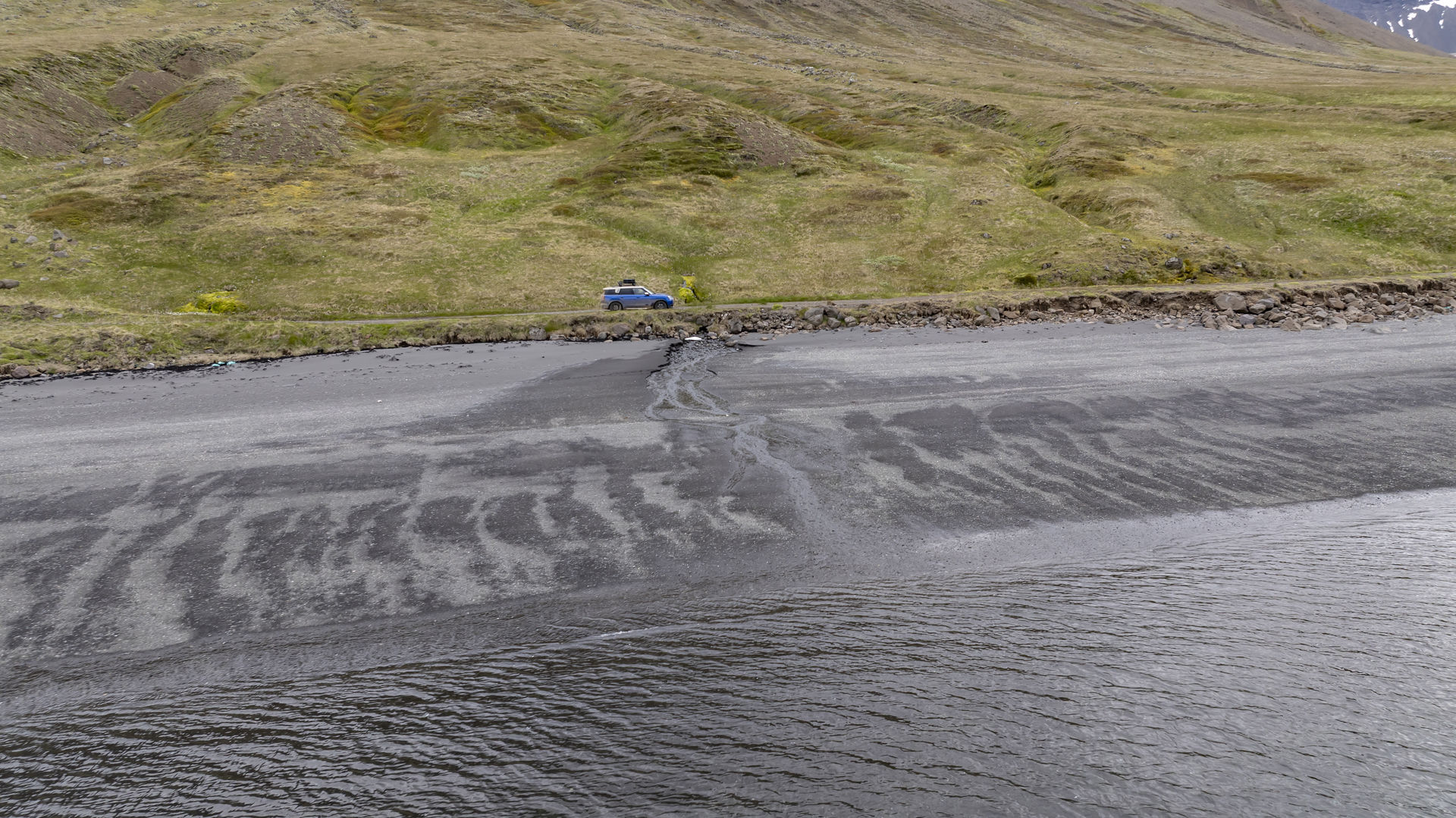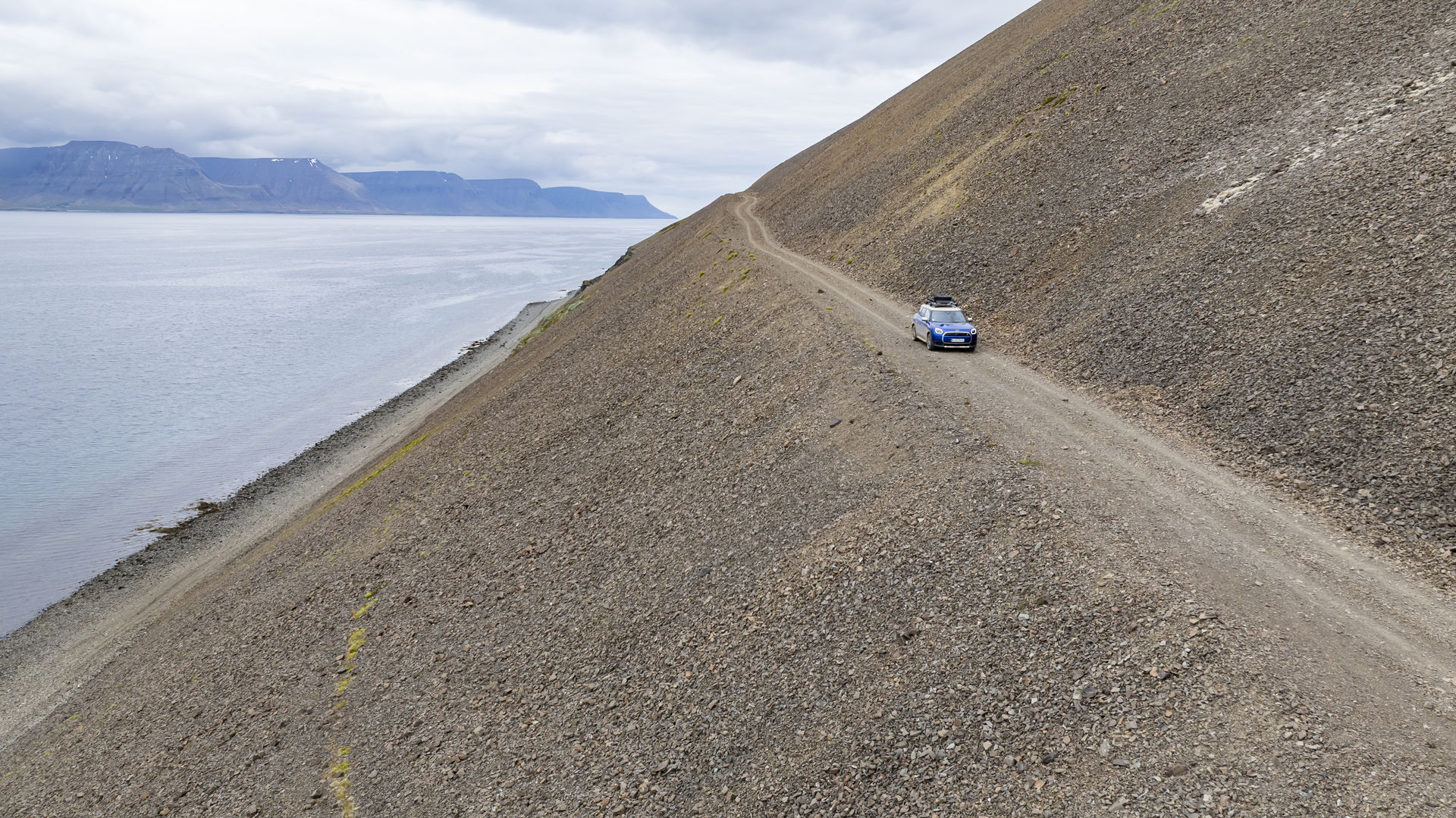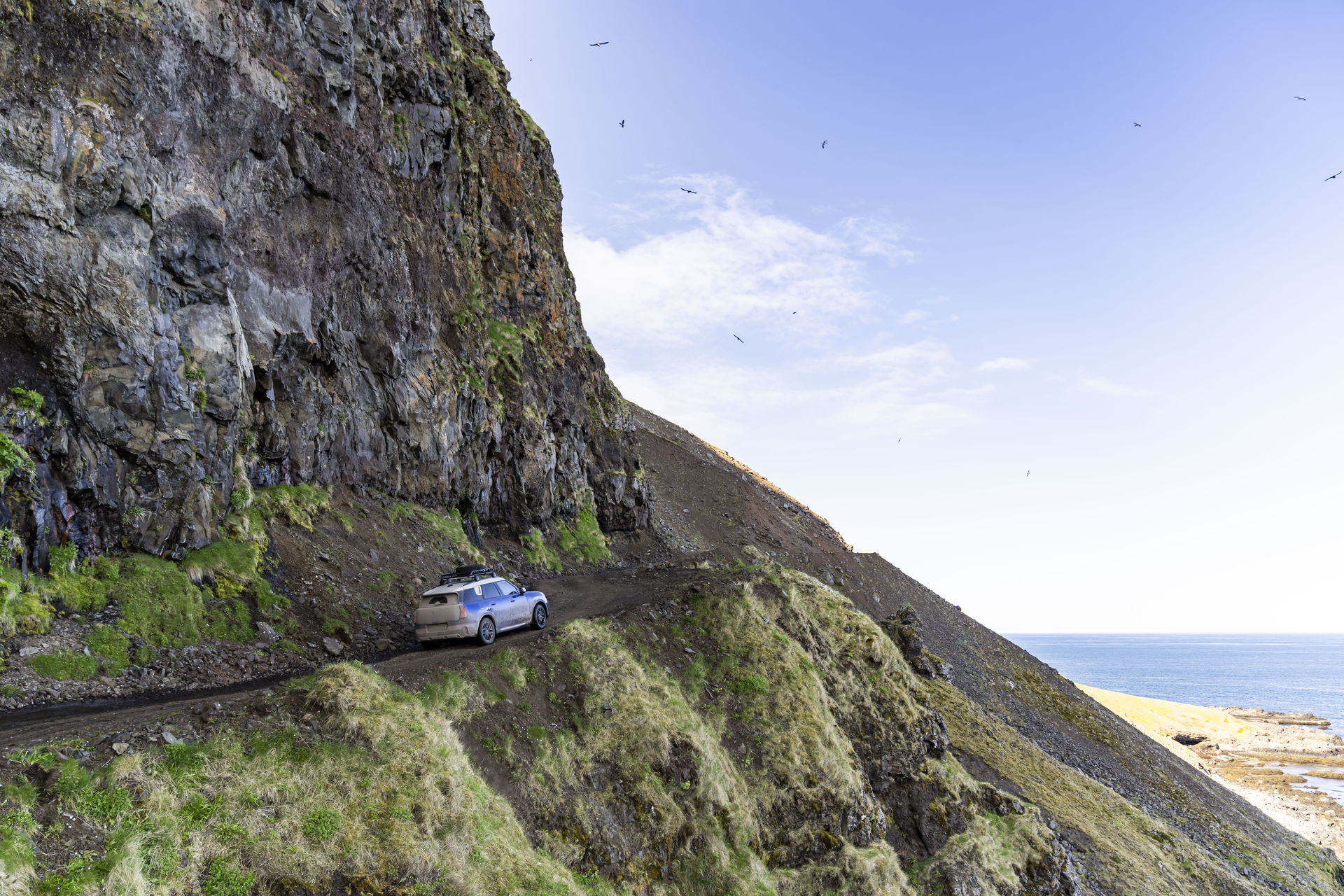 Νωρίς το επόμενο πρωί, το MINI Countryman SE ALL4, που έχει ήδη λερωθεί πολύ, ξεκινά το απαιτητικό τελικό στάδιο της Route 622 – μία από τις πιο δύσκολες και επικίνδυνες διαδρομές στα Westfjords, με ένα ιδιαίτερα εντυπωσιακό πέρασμα από χαλίκια δίπλα στο νερό, το οποίο μπορεί κανείς να διανύσει μόνο κατά την άμπωτη.