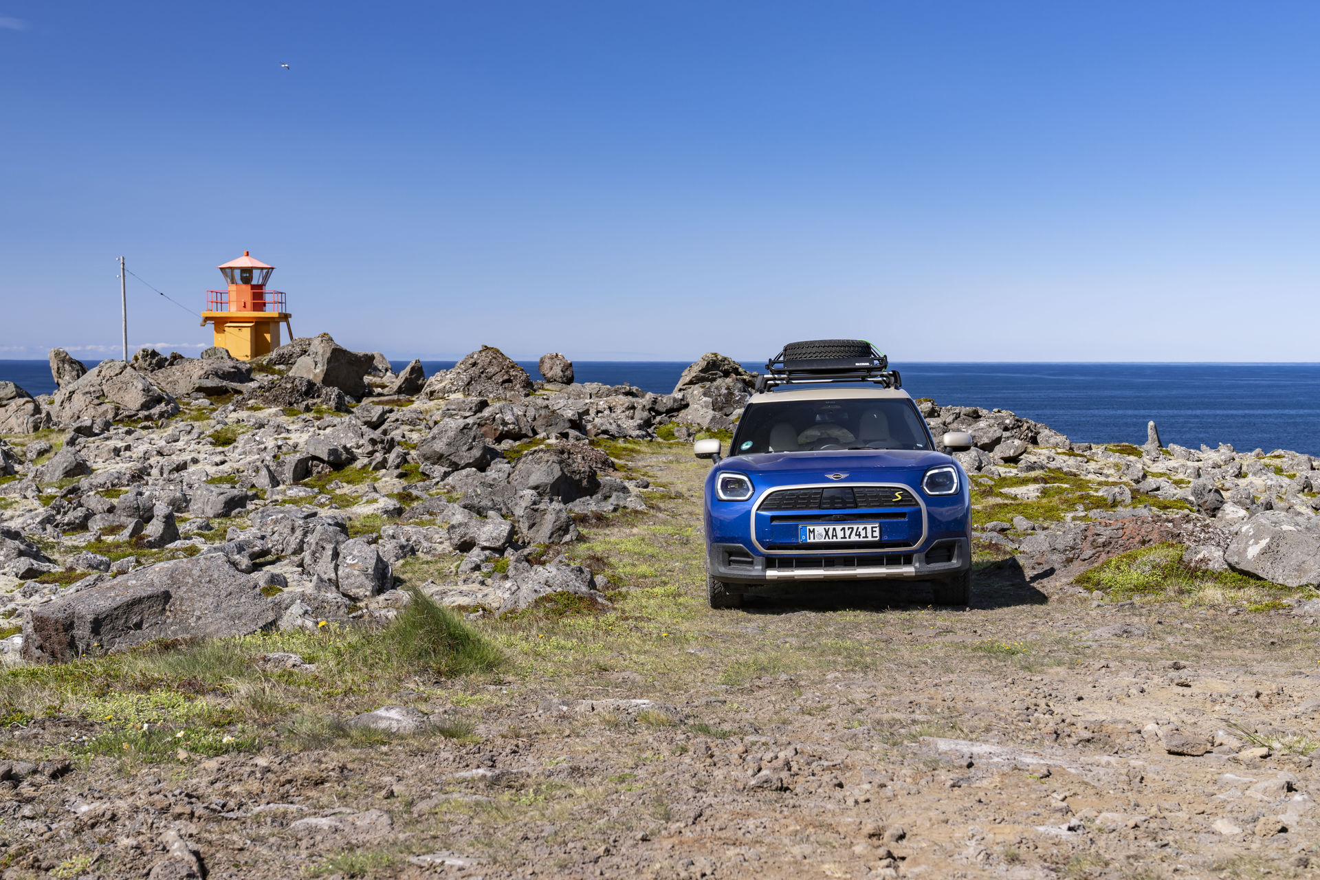 Με ηλεκτρική αυτονομία έως 432 χλμ. (WLTP), το MINI Countryman ξεκινά το πρώτο σκέλος του ταξιδιού, που το οδηγεί μέσω Αμβούργου στη Δανία, στο λιμάνι του Hirtshals. Τα εκτός δρόμου ελαστικά, ειδικά προσαρμοσμένα στις προκλήσεις του νησιού, και το φορτίο στην οροφή δεν μειώνουν σχεδόν καθόλου την αυτονομία του MINI Countryman SE ALL4.