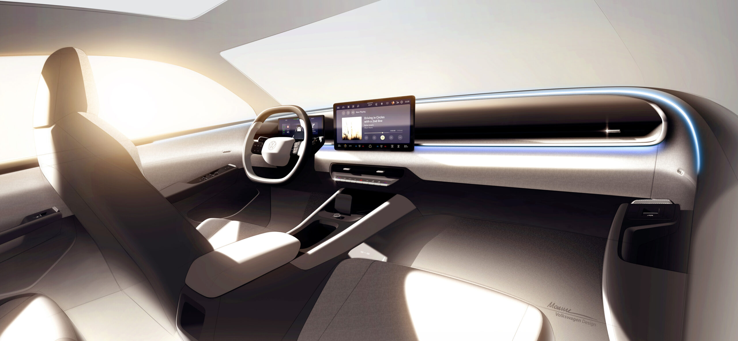 Στο εσωτερικό μέρος, θα συναντήσουμε δύο οθόνες: μία των 10,25 ιντσών για τον ψηφιακό πίνακα οργάνων και άλλη μία των 13 ιντσών για το σύστημα infortainment. Έχοντας γνώμονα τις κριτικές των πελατών της, η Volkswagen επαναφέρει τα φυσικά κουμπιά και διακόπτες τόσο στο νέο τιμόνι όσο και για την ρύθμιση του κλιματιστικού.