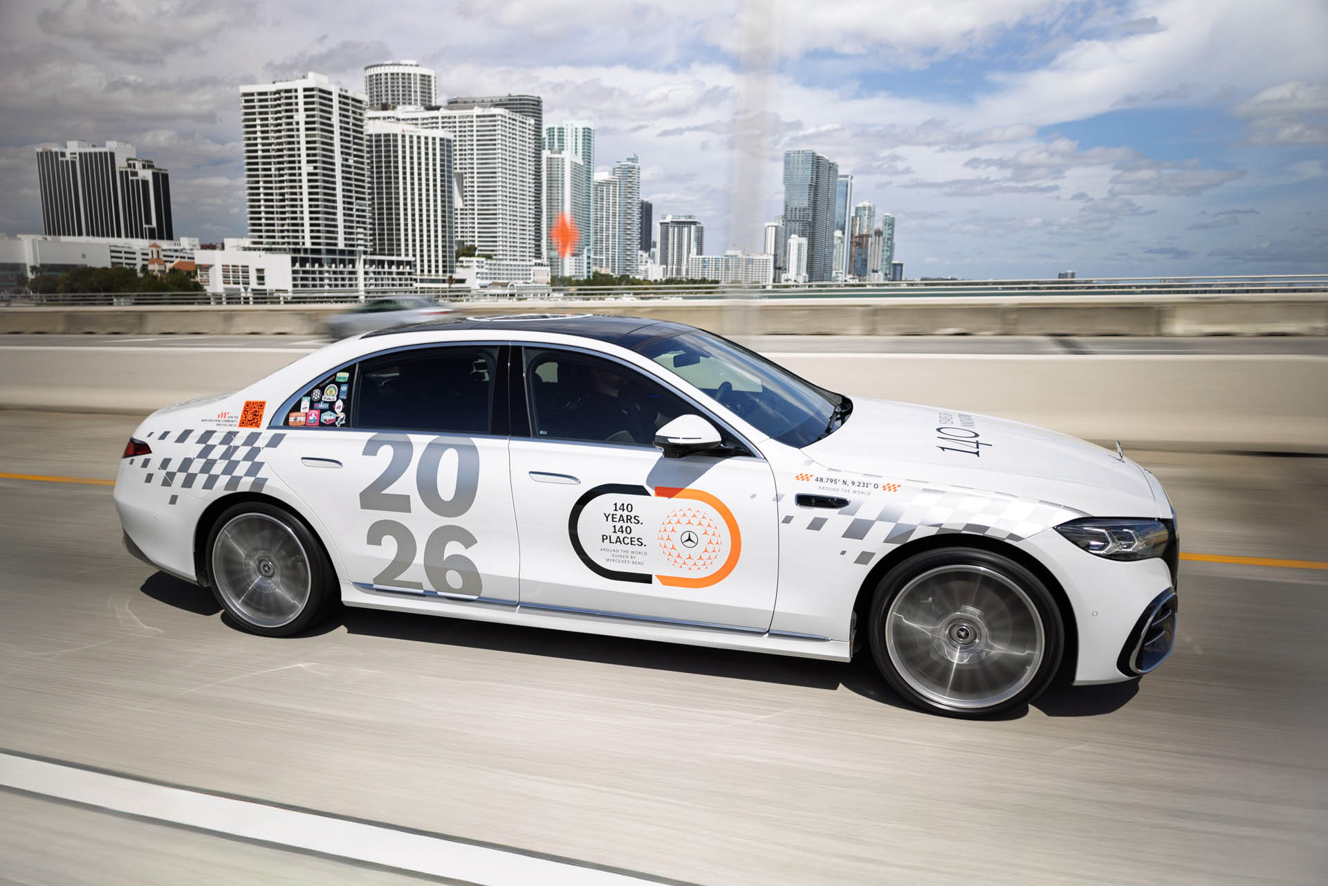 H Mercedes-Benz, γιορτάζοντας 140 χρόνια ιστορίας και καινοτομίας, ξεκίνησε ένα επικό ταξίδι που διασχίζει τις ηπείρους της υφηλίου. Σε αυτό το στάδιο, η νέα S-Class επσικέπτεται προορισμούς στις ΗΠΑ και τον Καναδά, συμπεριλαμβανομένων των Μαϊάμι, Γουάσινγκτον D.C., Νέα Υόρκη, Τορόντο, Tuscaloosa, Λας Βέγκας και Σαν Φρανσίσκο.