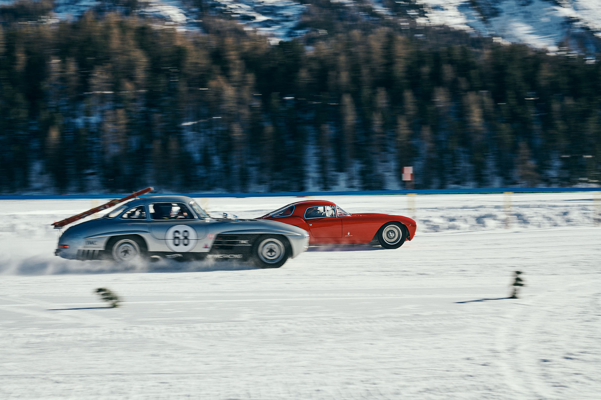 Μια μικρή Ferrari 246 Dino του 1974 εντυπωσίασε, όπως έκανε με την ευκινησία της στον πάγο μια Jaguar XKSS του 1956. Μια Aston Martin DB5 θυμίζει James Bond, καθώς είναι ένα από τα δύο που αγόρασε και τροποποίησε η Eon Productions για την ταινία του διασημότερου κατασκόπου όλων των εποχών, Thunderball, του 1965.