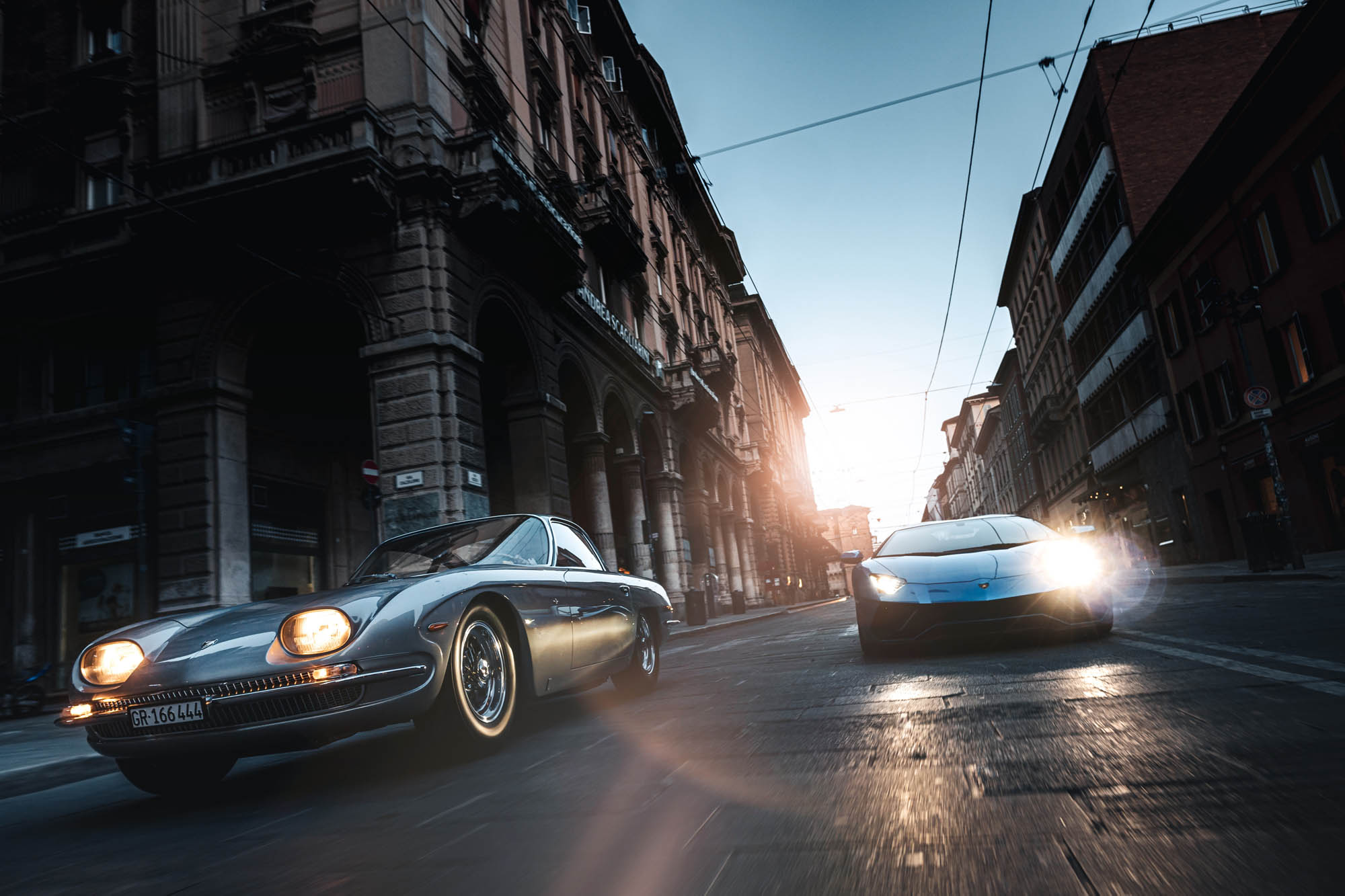 Η πρώτη Lamborghini που εξήλθε των πυλών του εργοστασίου της Sant’Agata Bolognese το 1964 ήταν η 350 GT, η πρόσφατα βρέθηκε στο ιστορικό κέντρο της Μπολόνια για μια συνάντηση με τον πιο πρόσφατο V12 στην ιστορία της μάρκας, την Aventador Ultimae. Για τη σχεδίαση του κινητήρα της 350 GT, ο Ferruccio Lamborghini επέλεξε έναν εξαιρετικό εξωτερικό σύμβουλο, τον μηχανολόγο Giotto Bizzarrini, γεννημένο στην Quercianella (επαρχία του Λιβόρνο) το 1926, ο οποίος ακόμη και σήμερα θεωρείται ένας από τους καλύτερους σχεδιαστές κινητήρων που έζησαν ποτέ.