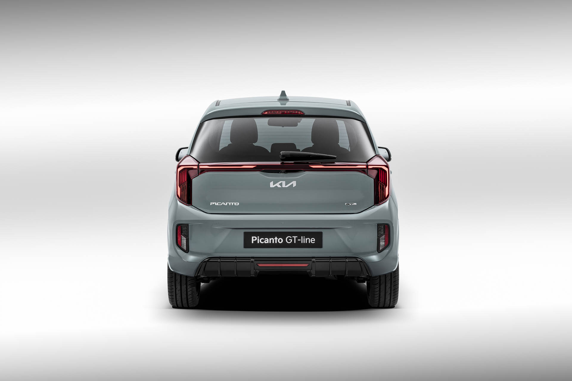 Στο πίσω μέρος ο φαρδύτερος σχεδιασμός προσφέρει μια πιο σπορ εικόνα στο Picanto, ενώ τα νέα κάθετα φωτιστικά σώματα ενώνονται μέσω μιας κεντρικής φωτεινής LED λωρίδας.