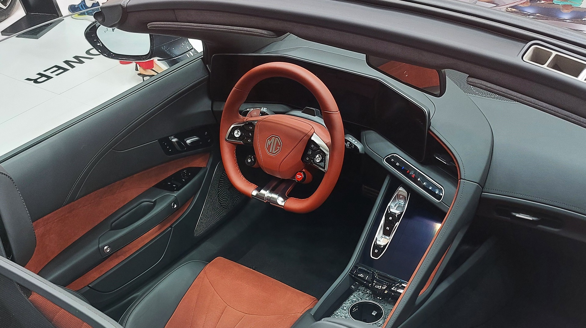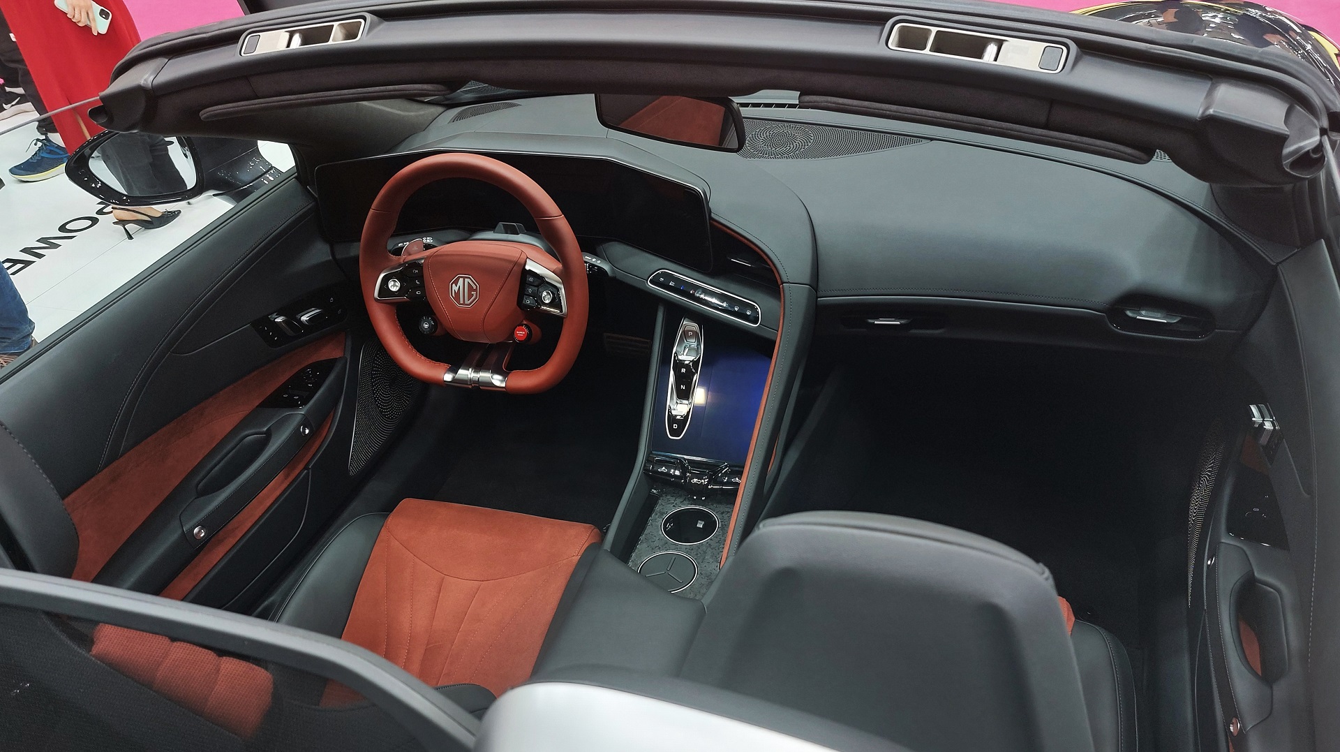 Η MG ωστόσο μας επεφύλασσε μια ευχάριστη έκπληξη, έστω και καθυστερημένη: το εντυπωσιακό roadster Cyberster που έφτασε καθυστερημένα στη χώρα μας και τοποθετήθηκε στο σταντ της μάρκας τη Δευτέρα.