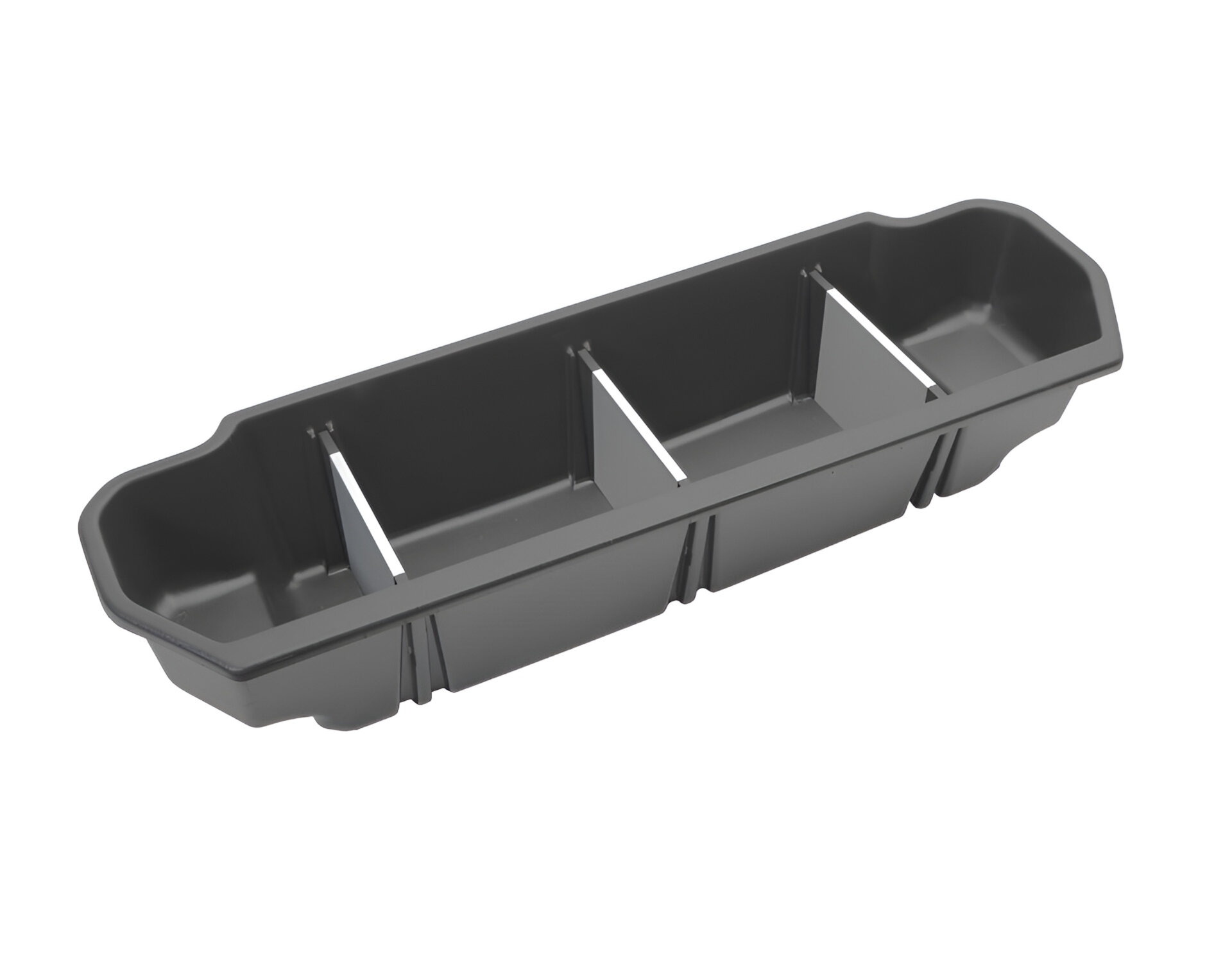 Για την Mustang Mach-E, η Ford διαθέτει μία βαθιά πλαστική θήκη με τρία αφαιρούμενα χωρίσματα. Η θήκη αυτή επιτρέπει την οργάνωση και τον διαχωρισμό αντικειμένων, προσφέροντας παράλληλα άμεση πρόσβαση.