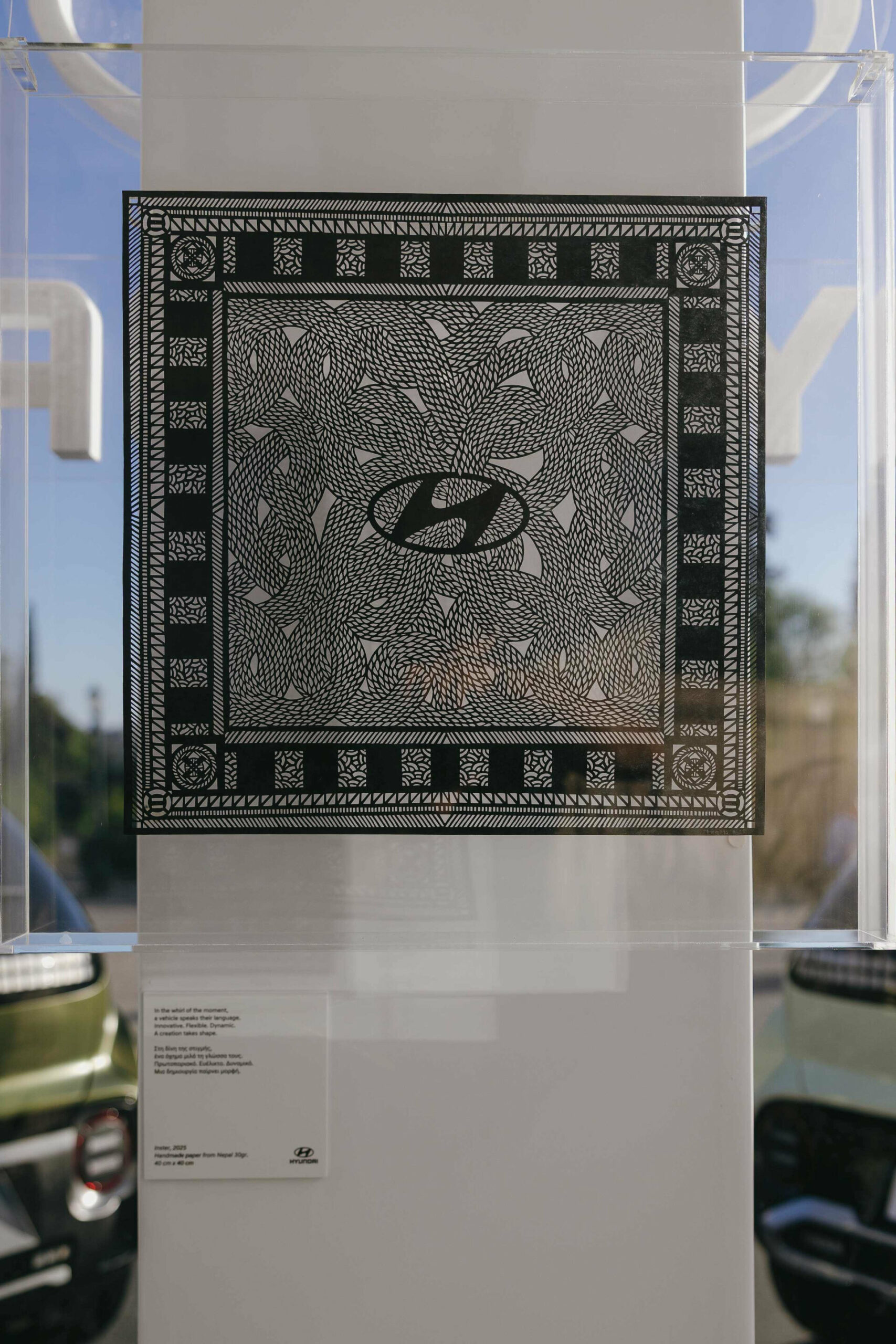 Η εταιρία φιλοξενεί μια ακόμη ξεχωριστή έκθεση έργων τέχνης στον προαύλιο χώρο του Ζαππείου Μεγάρου. Εμπνευσμένη από την κορεάτικη τέχνη του χαρτιού Hanji, η Hyundai συνεργάζεται με τον Στρατή Ταυλαρίδη, έναν καταξιωμένο καλλιτέχνη της τεχνικής papercut και παρουσιάζουν από κοινού χειροποίητα έργα φτιαγμένα εξ ολοκλήρου από ευαίσθητο χειροποίητο χαρτί, ασιατικής προέλευσης, κομμένο προσεκτικά με το χέρι.