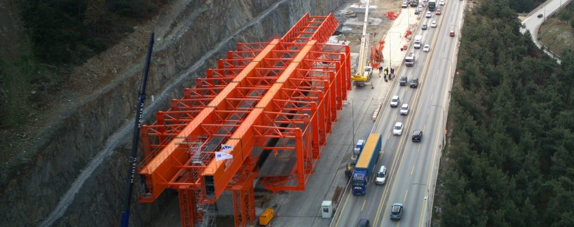 Το δεύτερο καλούπι – μπλε χρώματος – είναι αυτή την περίοδο σε φάση συναρμολόγησης και εντός του χειμώνα θα συνδράμει το πορτοκαλί καλούπι, το οποίο έχει αρχίσει το έργο κατασκευής της γέφυρας από την περασμένη άνοιξη.