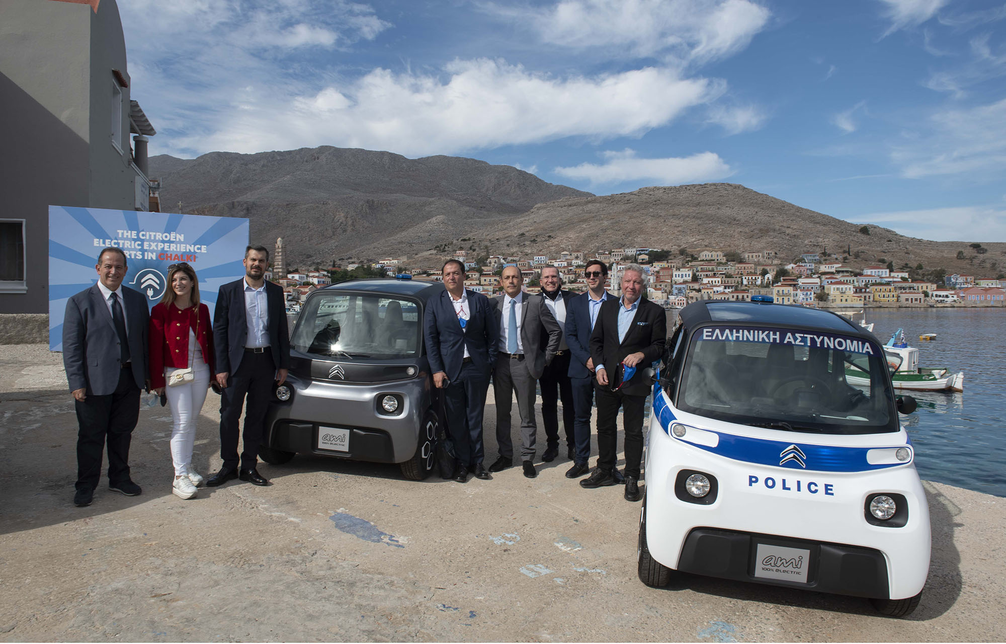 Παράλληλα, τα σώματα ασφαλείας στη Χάλκη αποκτούν σύγχρονα μεταφορικά μέσα για την κάλυψη των αναγκών τους, τα οποία εκτός από ηλεκτρικά, είναι έξυπνα και εξαιρετικά ευέλικτα στο δίκτυο του νησιού. Πρόκειται για τα νέα ΑΜΙ – την επαναστατική λύση της Citroen για την βιώσιμη αστική μετακίνηση – που παραδόθηκαν στην Αστυνομία και στο Λιμενικό Σώμα σε παγκόσμια πρώτη αποκλειστικότητα! Και αυτό διότι στη Χάλκη βρίσκονται τα μοναδικά διεθνώς Citroen AMI που φέρουν τον απαραίτητο εξοπλισμό για χρήση από σώματα ασφαλείας.