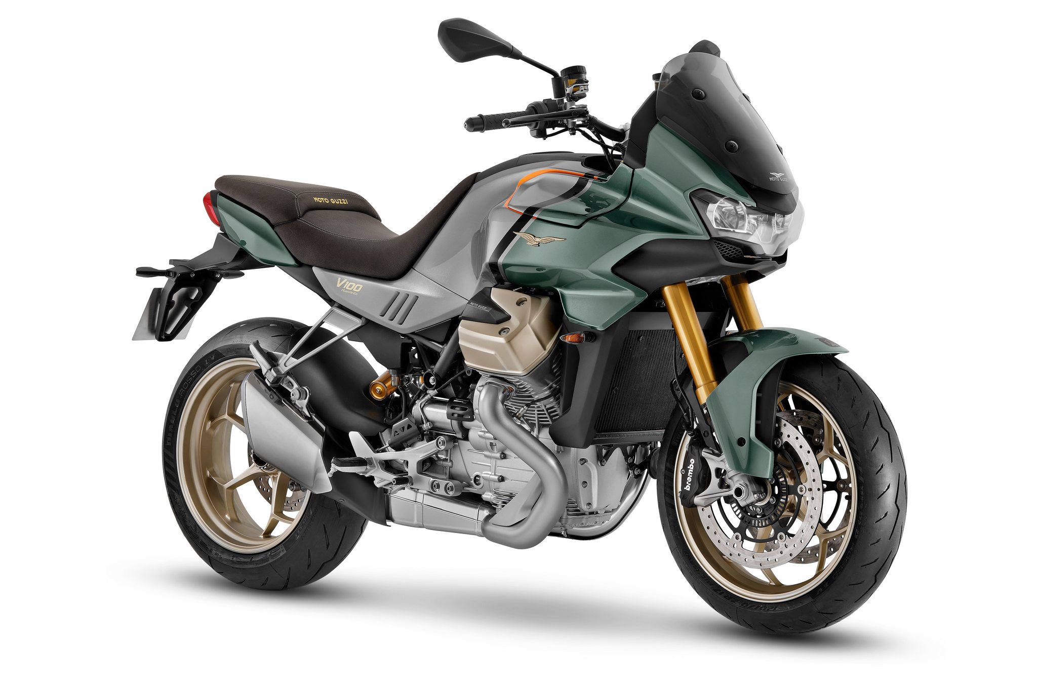 Η V100 Mandello είναι επίσης η πρώτη Moto Guzzi που τροφοδοτείται από τον νέο “compact block” κινητήρα, με προηγμένα τεχνικά χαρακτηριστικά. Η παράδοση γίνεται σεβαστή από την αρχιτεκτονική του εγκάρσιου V90° δικύλινδρου κινητήρα, που εγγυάται αυτόν τον μοναδικό τρόπο απόδοσης της ροπής και αυτόν τον αμίμητο ήχο Moto Guzzi, αλλά στην πραγματικότητα είναι εντελώς νέος και διαθέτει αναμφισβήτητα εξαιρετική απόδοση: η ισχύς είναι 115 HP και η ροπή είναι 105 Nm, με το 82% να είναι διαθέσιμο ήδη από τις 3.500 στροφές/λεπτό.