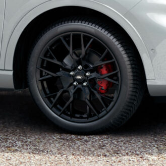 Τα σήματα ST-Line και η επιγραφή Kuga στην πίσω πόρτα έχουν επίσης μαύρο φινίρισμα, ενώ μαύρες είναι και οι ζάντες αλουμινίου των 20 ιντσών, οι οποίες ανήκουν στον στάνταρ εξοπλισμό.