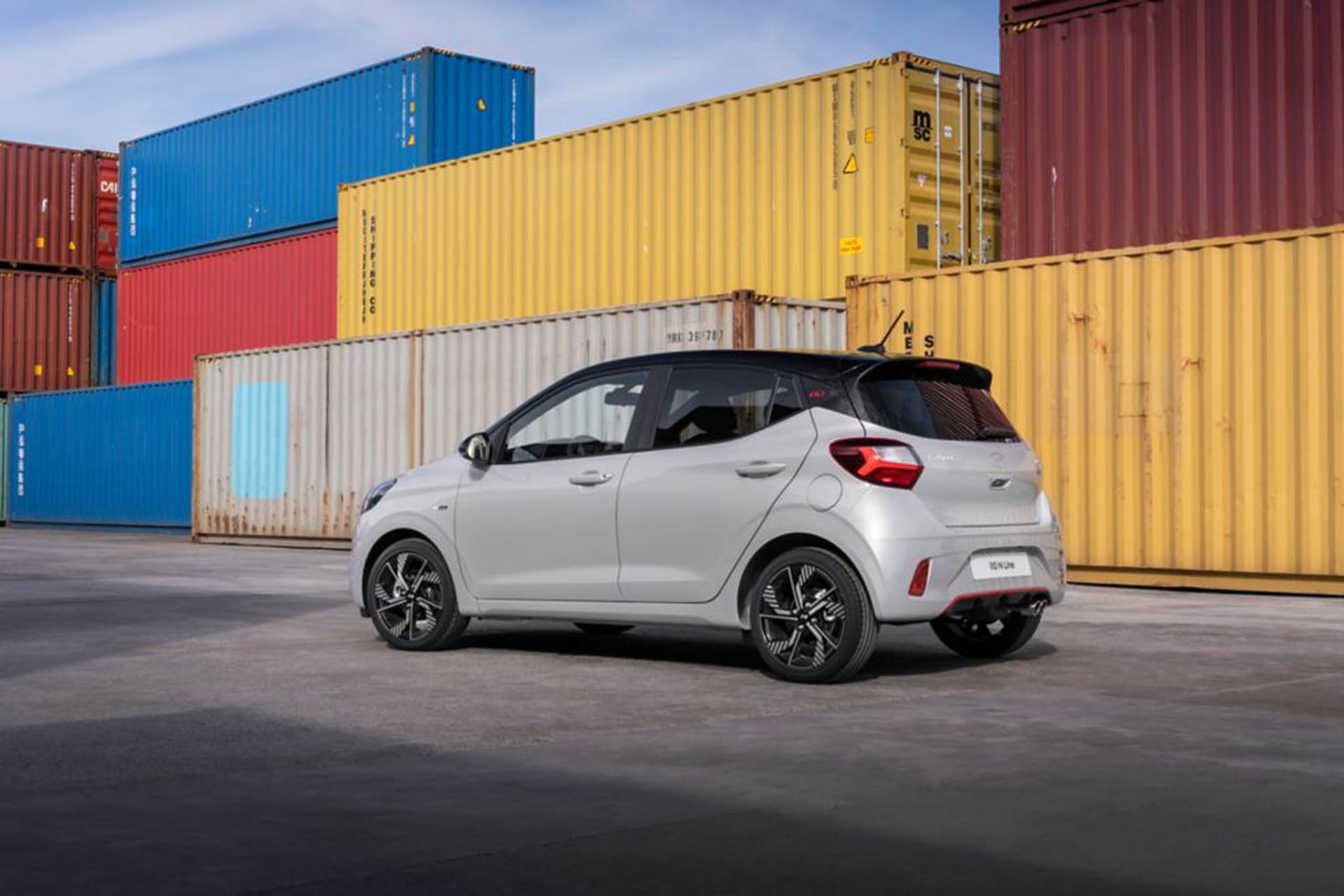 Όσον αφορά το Hyundai i10 N Line, oι εξωτερικές αναβαθμίσεις περιλαμβάνουν ειδικά σχεδιασμένους προφυλακτήρες, ένθετα και κόκκινες πινελιές. Οι νέες, αποκλειστικές ζάντες αλουμινίου 16 ιντσών και τα εμπρός φώτα ημέρας LED (DRL) τονίζουν τη χαρακτηριστική σχεδίαση του i10 N Line και τη σπορ συμπεριφορά του αυτοκινήτου. Τα άλλα αποκλειστικά σχεδιαστικά χαρακτηριστικά του i10 N Line περιλαμβάνουν τα λογότυπα N Line, το σήμα i10 σε κόκκινη γραμματοσειρά, προστατευτική «ποδιά» και διαχύτη.