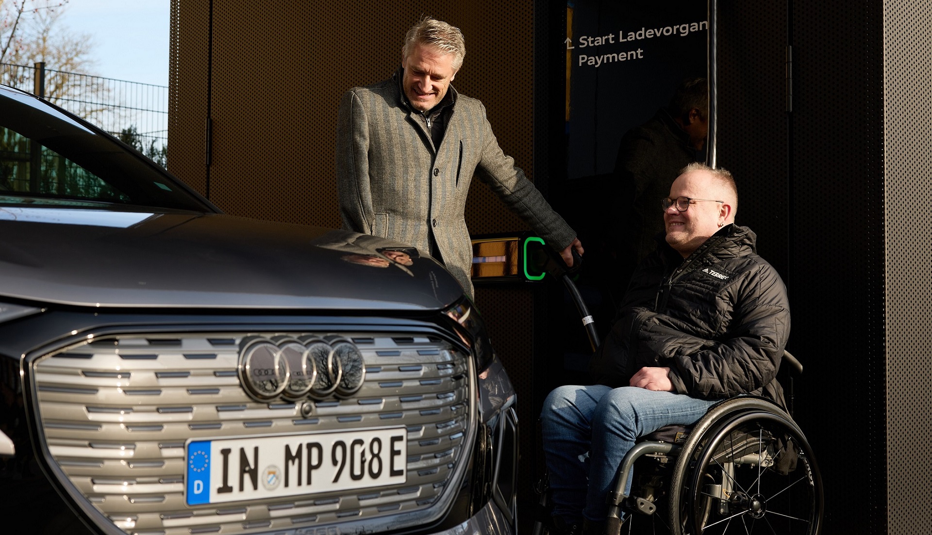 Επιπλέον, όλοι οι κόμβοι φόρτισης της Audi είναι σχεδιασμένοι έτσι ώστε να μην δημιουργούν εμπόδια: ένας περιστρεφόμενος βραχίονας, για τον οποίο έχει κατοχυρωθεί δίπλωμα ευρεσιτεχνίας, οι οθόνες ρυθμιζόμενου ύψους και ο άφθονος χώρος για ελιγμούς – για παράδειγμα, ενός αναπηρικού αμαξιδίου – καθιστούν τη φόρτιση εύκολη για όλους, συμπεριλαμβανομένων των ατόμων με ειδικές ανάγκες.