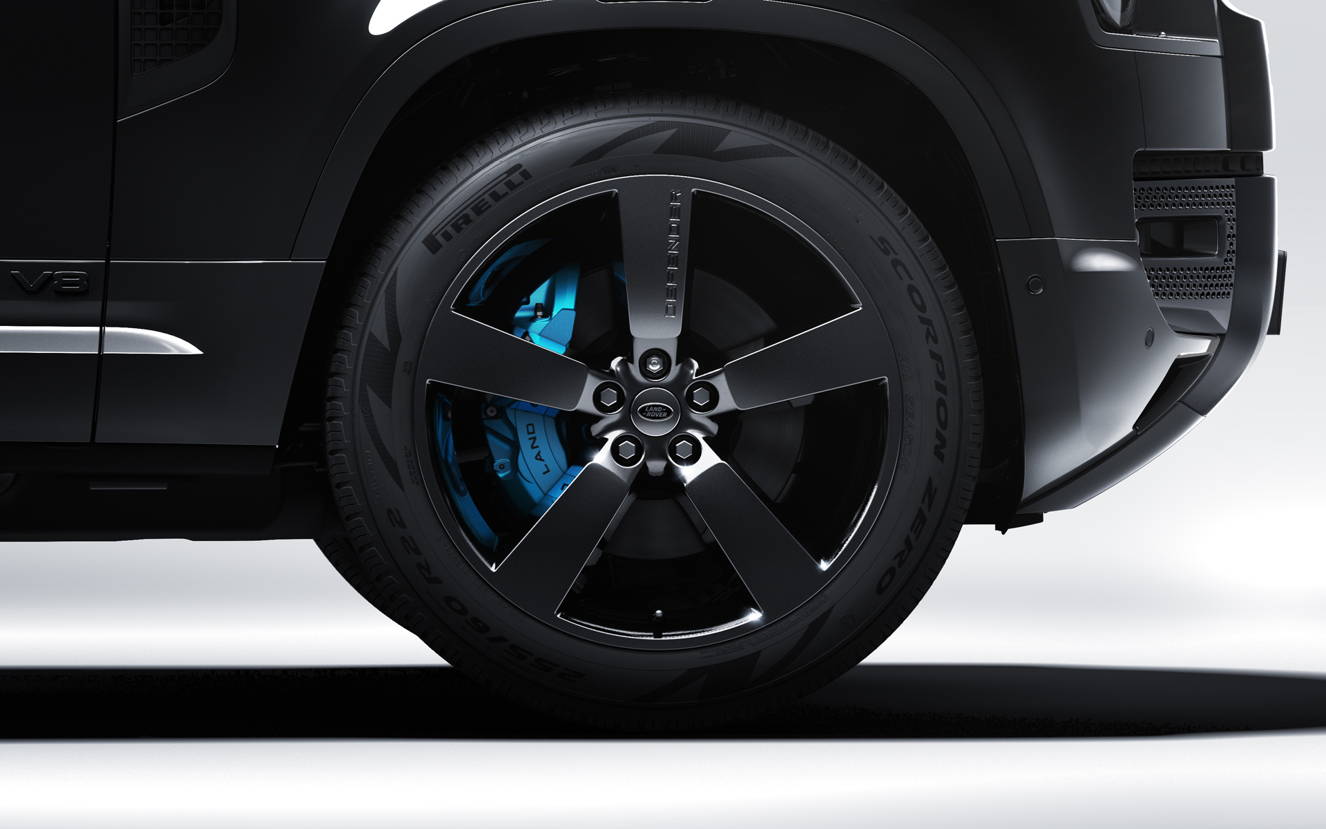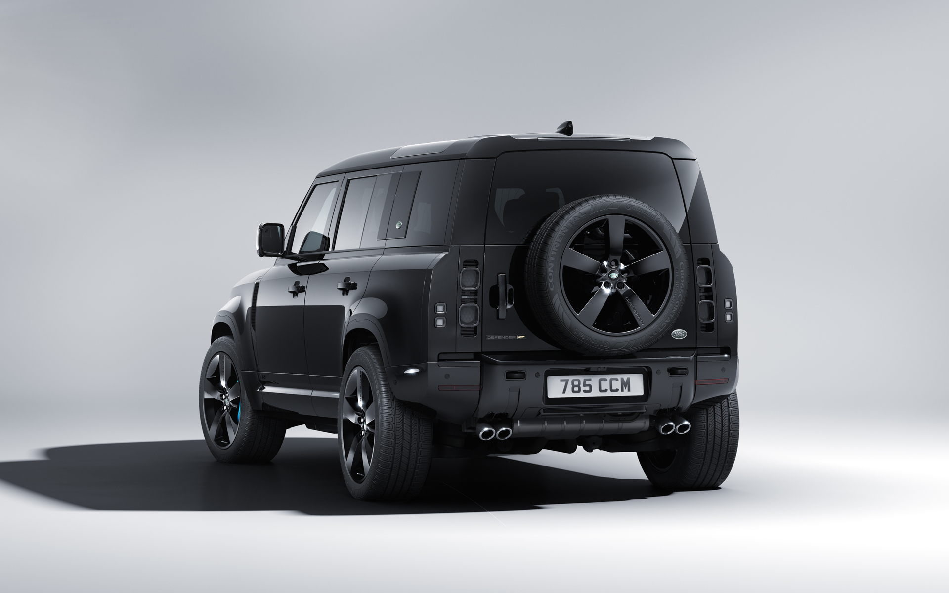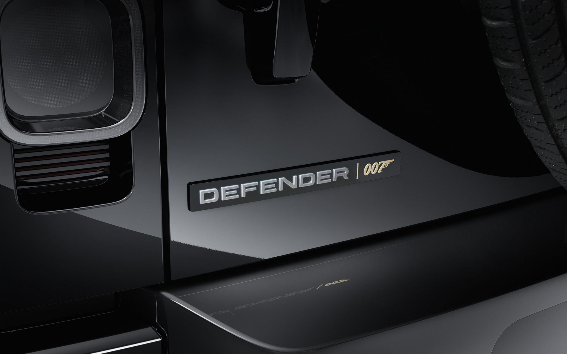 Σχεδιαστικά διακρίνεται για το Μαύρο πακέτο του με τους μεγάλους τροχούς των 22 ιντσών σε γυαλιστερό μαύρο χρώμα και τις μπλε δαγκάνες των φρένων. Μαζί με το σκούρο εξωτερικό οι άνθρωποι του τμήματος SV Bespoke της Land Rover, έχουν ταιριάξει και τα logo “Defender 007”.