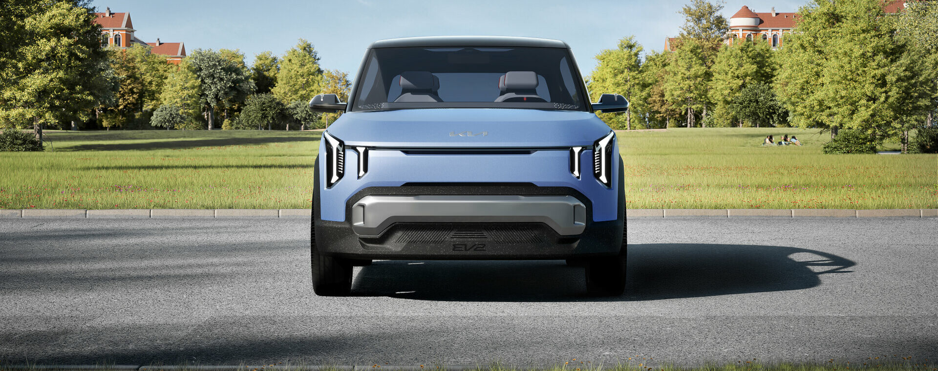Προς το παρόν έχουμε δει μόνο την πρωτότυπη εκδοχή του Kia EV2, όμως πολλά από τα σχεδιαστικά στοιχεία του πρωτότυπου θα βρίσκονται και στο μοντέλο παραγωγής. Το αμάξωμα είναι ιδιαίτερα τετραγωνισμένο, θυμίζοντας αρκετά τα καμουφλαρισμένα μοντέλα δοκιμών που είχαν εντοπιστεί τον Νοέμβριο. Τα φωτιστικά σώματα εμπρός και οι γραμμές του αμαξώματος συμφιλιώνονται με την σχεδιαστική γλώσσα που παρουσιάστηκε για πρώτη φορά στο Kia EV9.