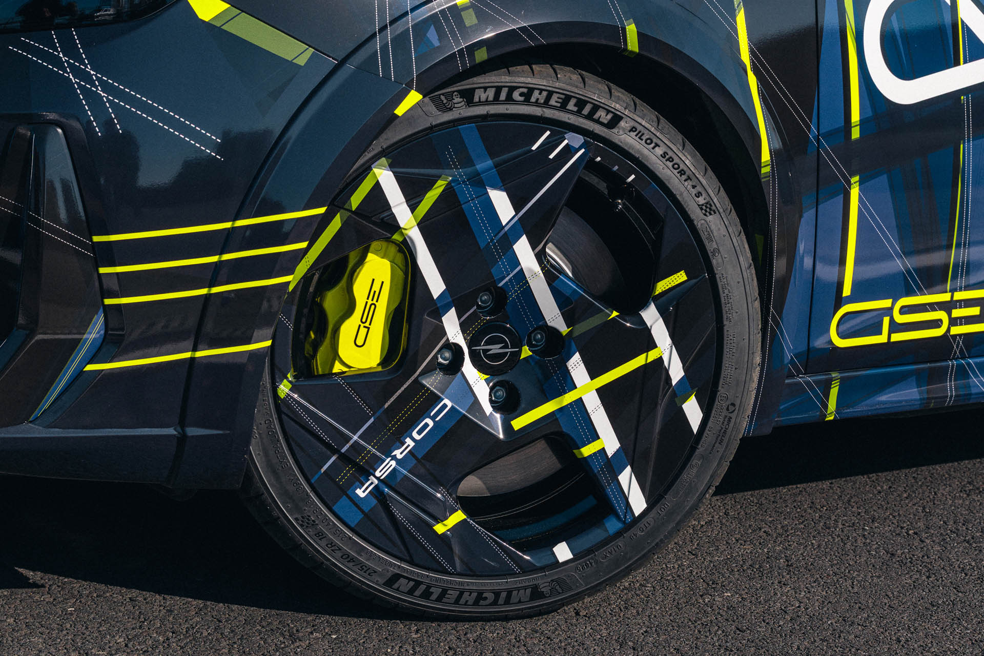 Για την Opel, τα αρχικά GSE συνδέονται με ένταση, ταχύτητα και οδηγική συγκίνηση. Η ματ μαύρη βάση του καμουφλάζ αποπνέει δυναμισμό, ενώ οι έντονες κίτρινες και λευκές ρίγες με την υπογραφή GSE δημιουργούν μια οπτική δήλωση υψηλών επιδόσεων. Το μοτίβο παραπέμπει σε σπορ καρό, συμπληρωμένο από διάστικτες διπλές γραμμές που θυμίζουν λεπτοδουλεμένες ραφές.