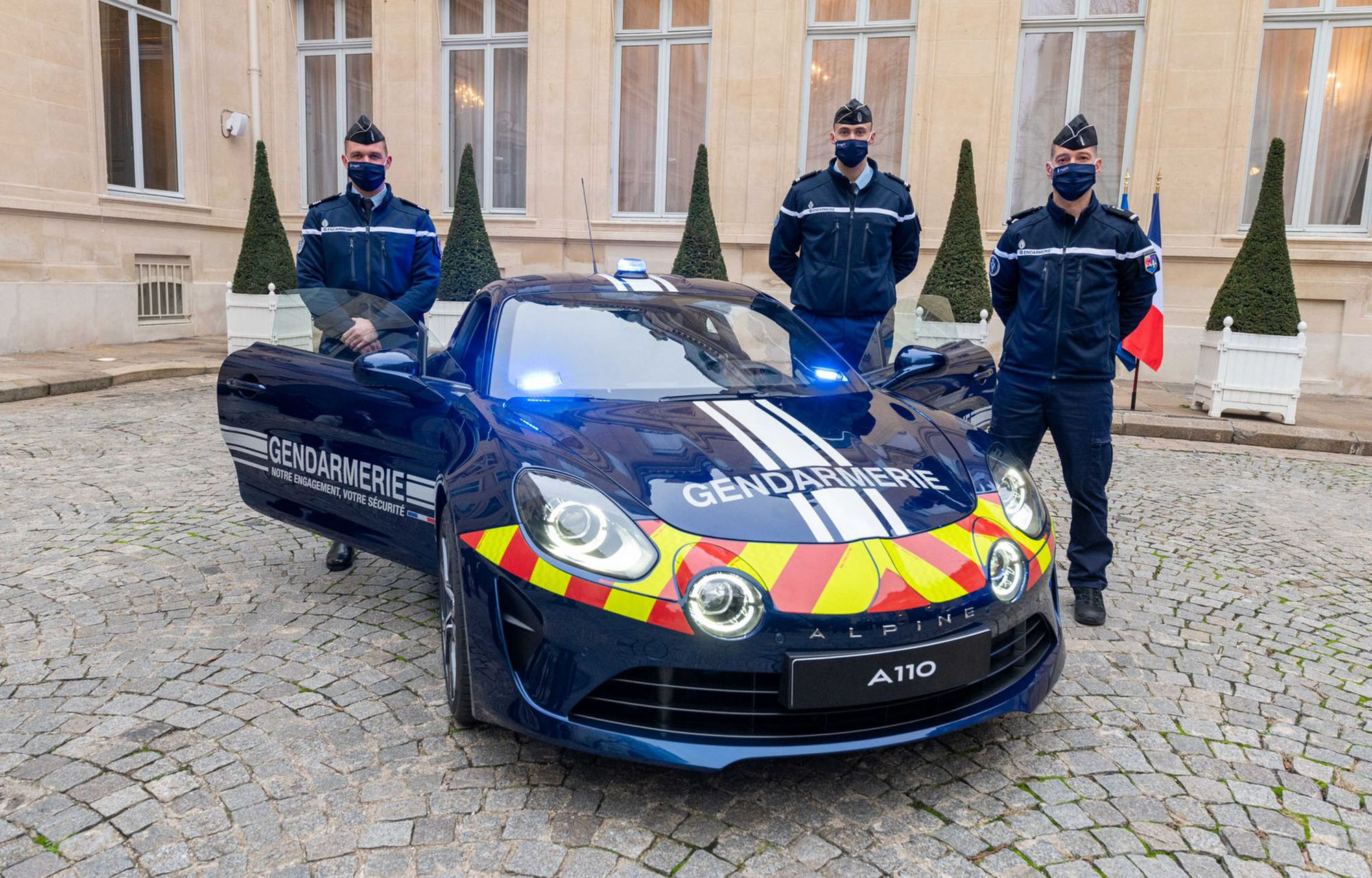 Με την παράδοση των δύο πρώτων, από τα 26 Alpine A110, η Γαλλική αστυνομία εξοπλίζεται για «ταχείες επεμβάσεις». Τα Alpine της αστυνομίας είναι βαμμένα σε μπλέ μεταλλικό χρώμα, με ειδικά ανακλαστικά, φάρους και άλλες τροποποιήσεις.