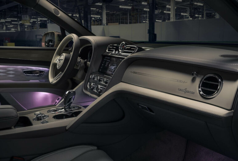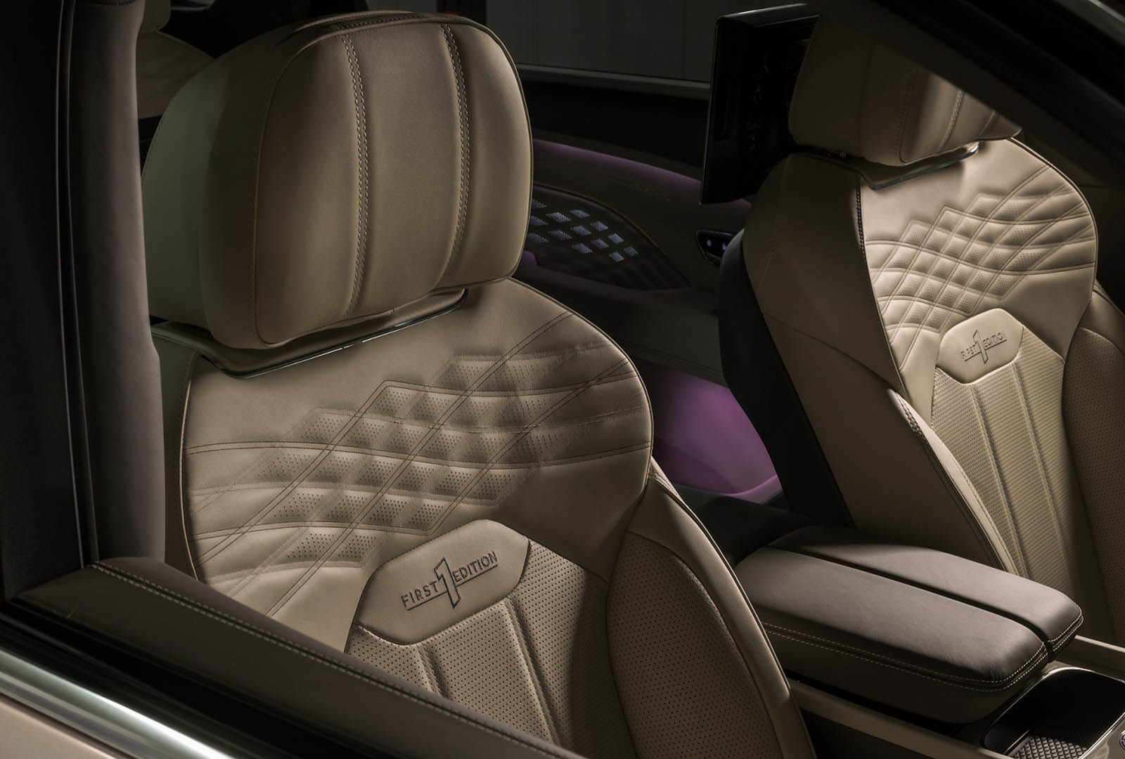 Αποκλειστικές για την έκδοση «First Edition» είναι οι ραφές και τα κεντήματα που στολίζουν τα καθίσματα. Ανάλογα με την επιλογή της επένδυσης, διατίθενται και χειροποίητα μεταλλικά φινιρίσματα πάχους μόλις 0,075 χιλιοστών, τα οποία μπορούν να εφαρμοστούν τόσο στο ταμπλό όσο και περιμετρικά των διακοσμητικών καλυμμάτων των εμπρός και πίσω θυρών.