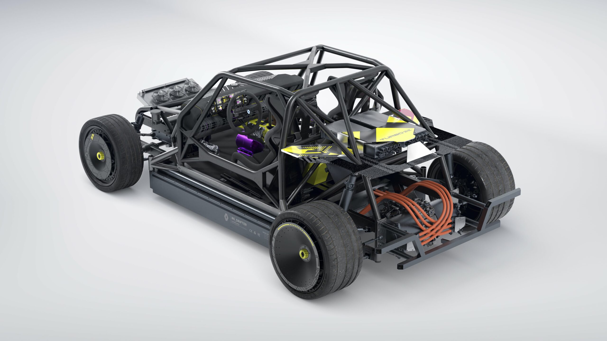 Υπενθυμίζεται ότι το Turbo 3E το οποίο δίνει το παρών στη γαλλική έκθεση αποτελεί φόρο τιμής στα 50 χρόνια του αρχέτυπου R5. Αφετηρία αποτελεί το χωροδικτύωμα του αγωνιστικού Andros Trophy το οποίο φιλοξενεί ένα δίδυμο ηλεκτρικών μοτέρ με συνδυαστική ισχύ 380 ίππων και 700 Nm ροπής με την ισχύ να μεταδίδεται αποκλειστικά στον πίσω άξονα.