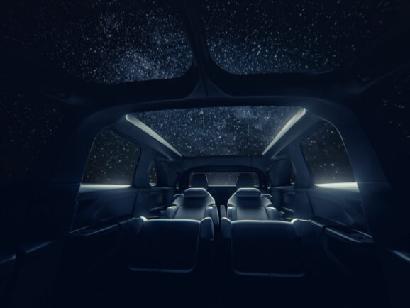 Το Gravity θα μπορούσε να προσφέρει μια σειρά από δερμάτινες, υφασμάτινες και ξύλινες επενδύσεις στο εσωτερικό, ενώ θα υπάρχει η χαρακτηριστική λωρίδα φωτισμού περιβάλλοντος της εταιρείας ενσωματωμένη σε μια κεντρική ράχη στο παρμπρίζ. Αυτές οι εικόνες teaser δείχνουν ότι σε αντίθεση με το Air, το Gravity θα καταργήσει τα παραδοσιακά σκίαστρα και μπορεί να χρησιμοποιήσει αντ’ αυτού κάποια μορφή φωτοχρωμικού κρυστάλλου.
