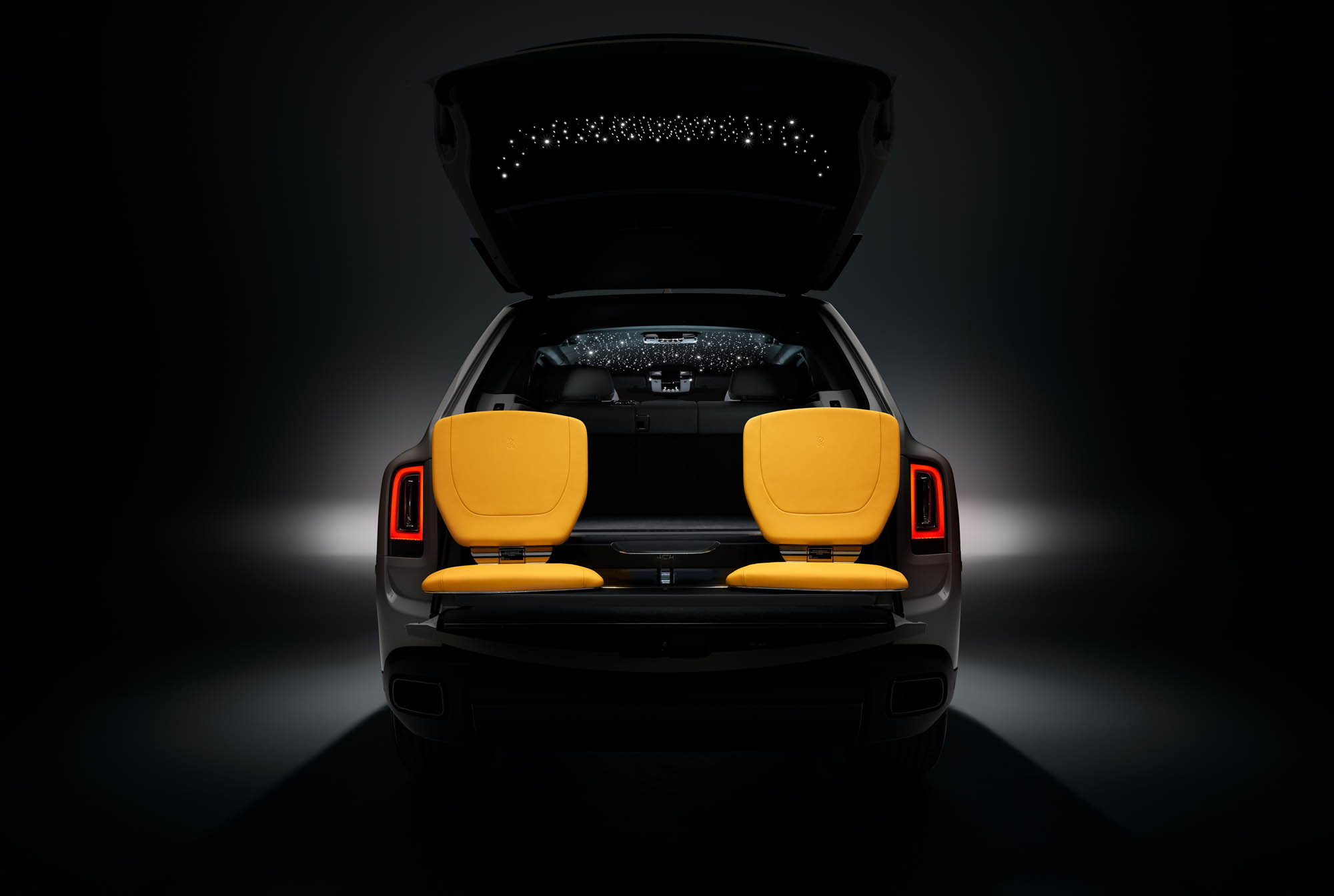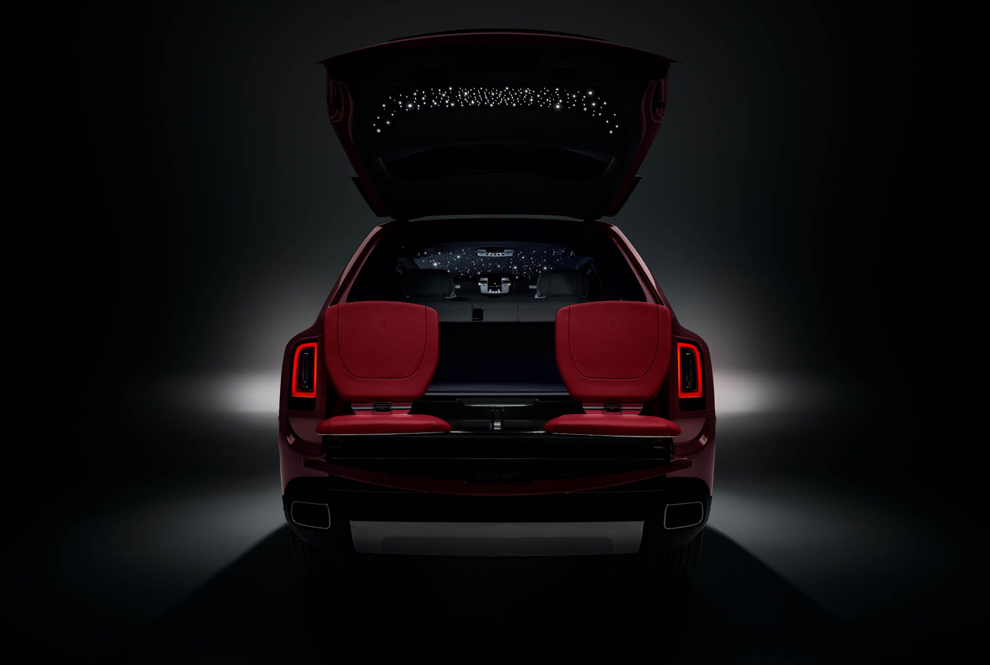 Για τη γραμμή ‘Cullinan – Inspired by Fashion’, οι σχεδιαστές δημιούργησαν τo ολοκαίνουργιo Starlight Tailgate, ένα χαρακτηριστικό στο εσωτερικό της πίσω θύρας που επεκτείνει την ατμόσφαιρα του Starlight Headliner πέραν από το εσωτερικό του αυτοκινήτου.