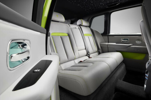 Η πρόσοψη ολοκληρώνεται με εξαιρετικά λεπτομερές χειροποίητο υφαντό ύφασμα από ανοξείδωτο χάλυβα, που θυμίζει τα μεταλλικά ενδύματα που είδαμε στις φετινές πασαρέλες. Η λεπτή κλωστή με διάμετρο μόλις 0,45 χλστ. δημιουργεί μια περίπλοκη υφή, η οποία αντανακλά περίτεχνα το φως καθώς το όχημα βρίσκεται σε κίνηση. Η Re-Belle «Cullinan – Inspired by Fashion» προσφέρεται σε εξωτερικά χρώματα Lime Green, Gunmetal, Wildberry ή Arctic White, διαθέσιμα ανάλογα με το επιλεγμένο εσωτερικό.