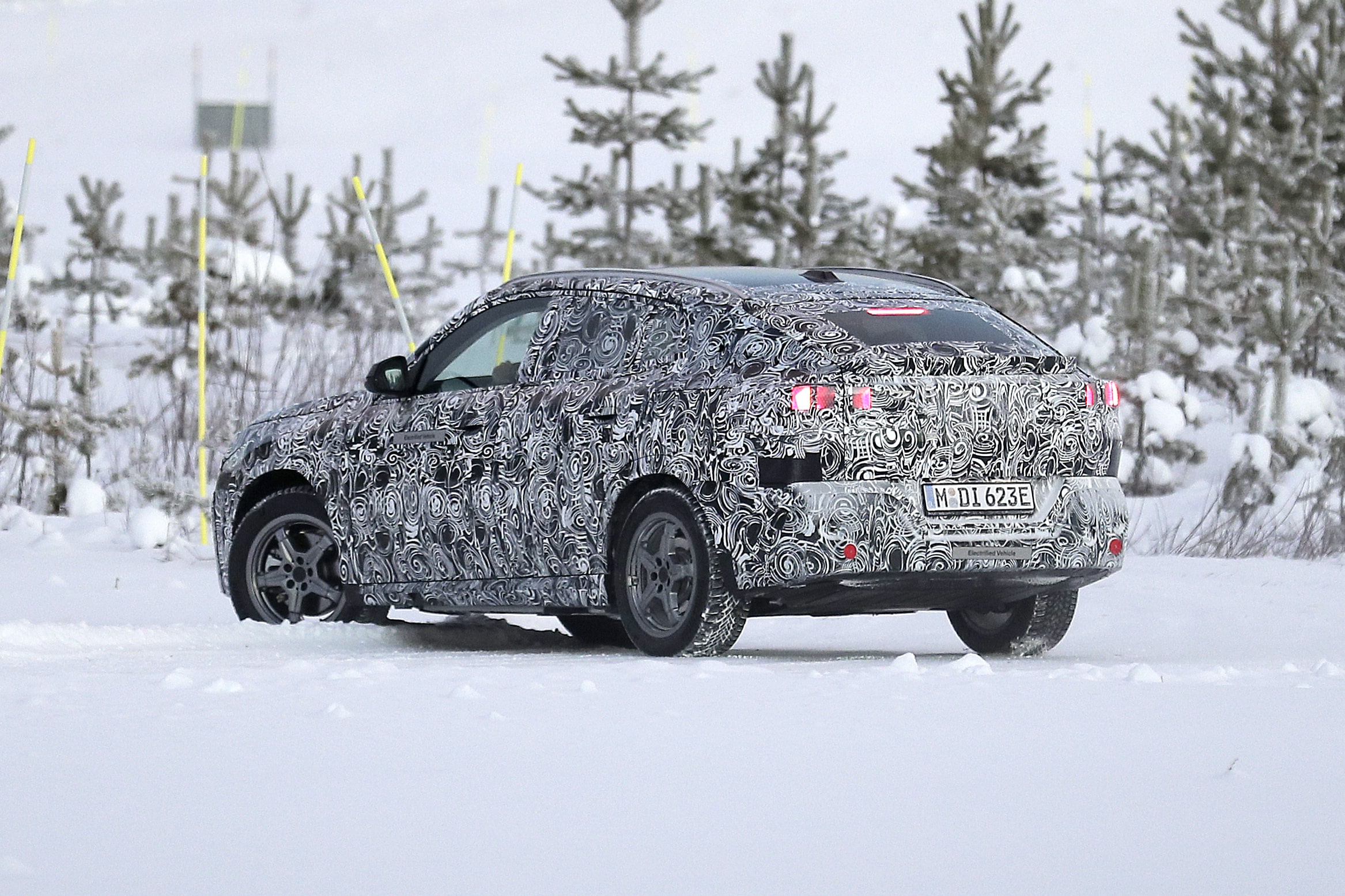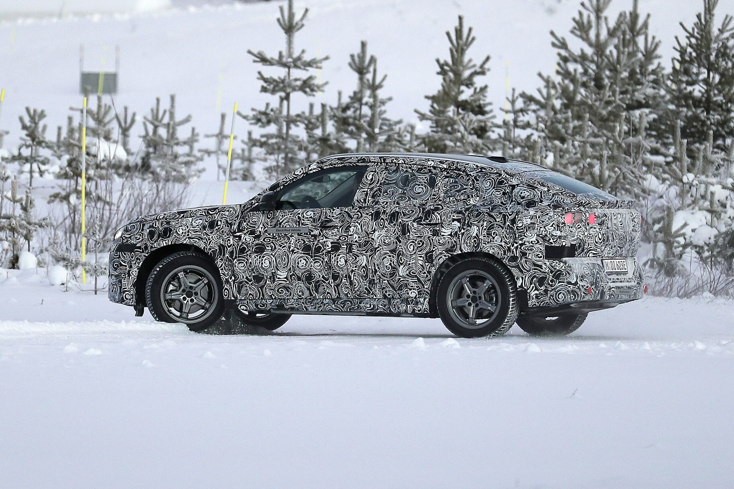 Kυρίαρχο στοιχείο της σχεδίασης, φυσικά, και στην προκειμένη περίπτωση θα είναι η coupe χάραξη της οροφής η οποία ακολουθεί μια ακόμα δυναμικότερη γεωμετρία σε συνδυασμό και με την σχεδίαση στις τρίτες κολώνες. Εκτός από την χαρακτηριστική απόληξη της οροφής στο πίσω τμήμα διακρίνεται επίσης η σχεδίαση των φωτιστικών σωμάτων που παρά το καμουφλάζ δείχνουν παρόμοια με της Χ1.
